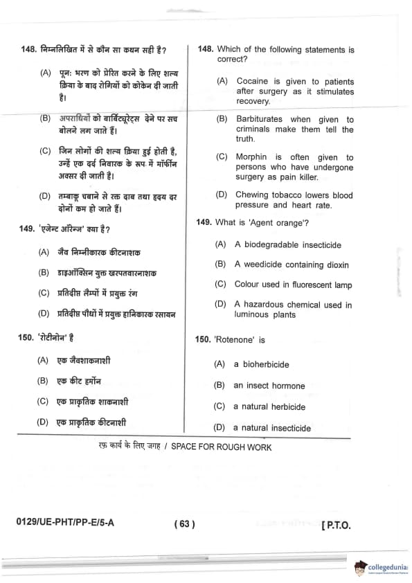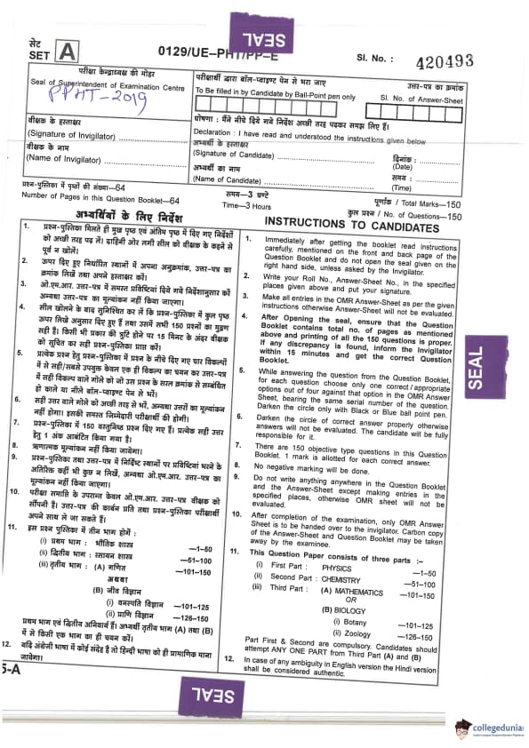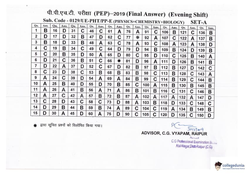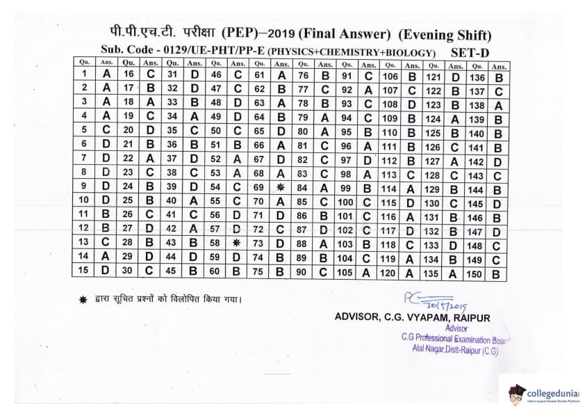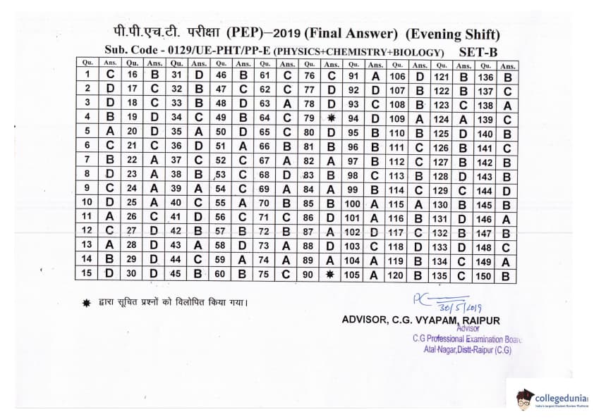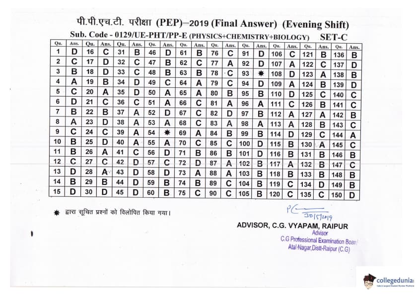 CG PPHT 2019 Question paper with answer key pdf conducted on May 2, 2019 is available for download. The exam was successfully organized by Chhattisgarh Professional Examination Board (CPEB). The question paper comprised a total of 150 questions.