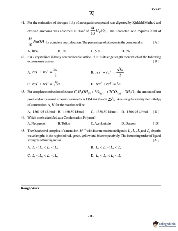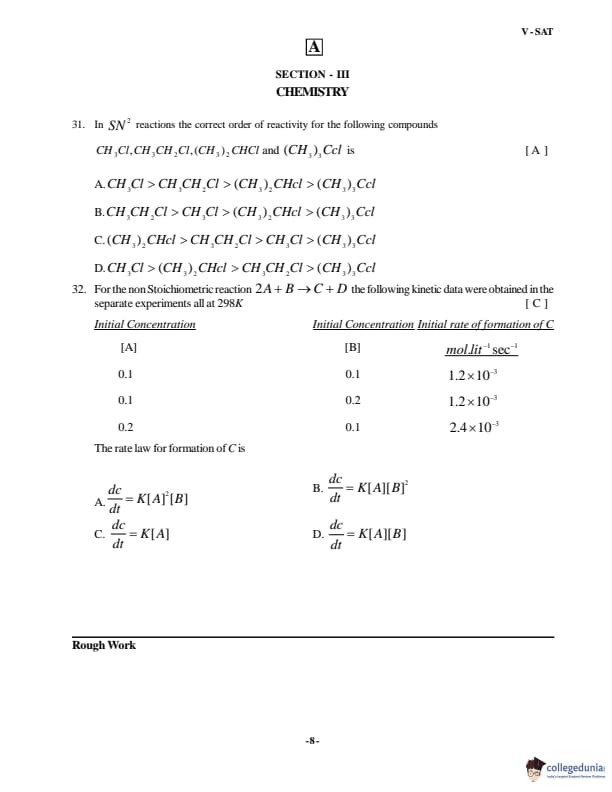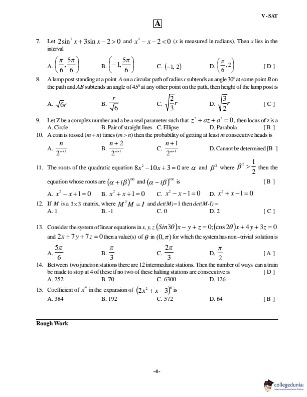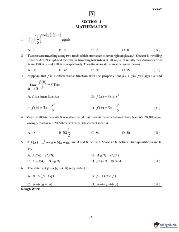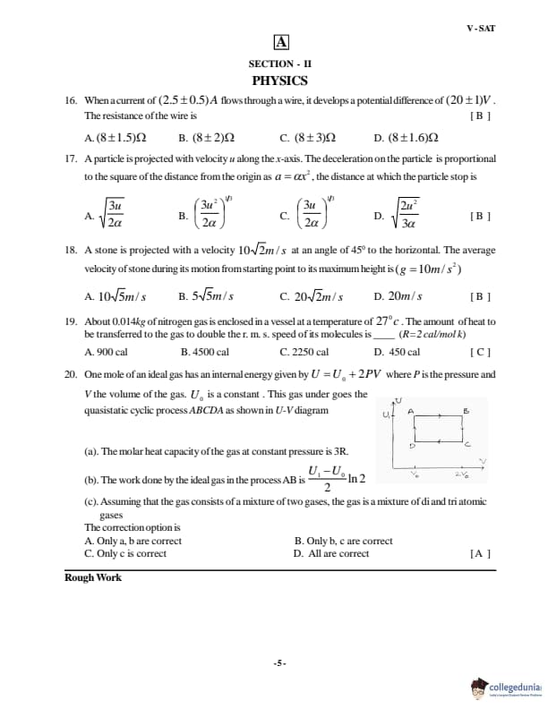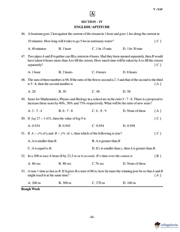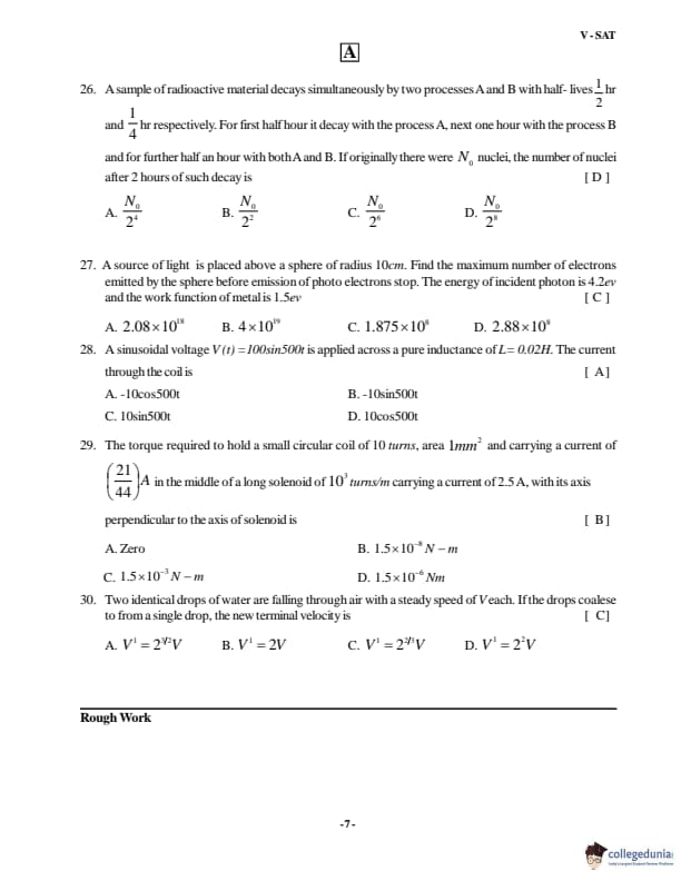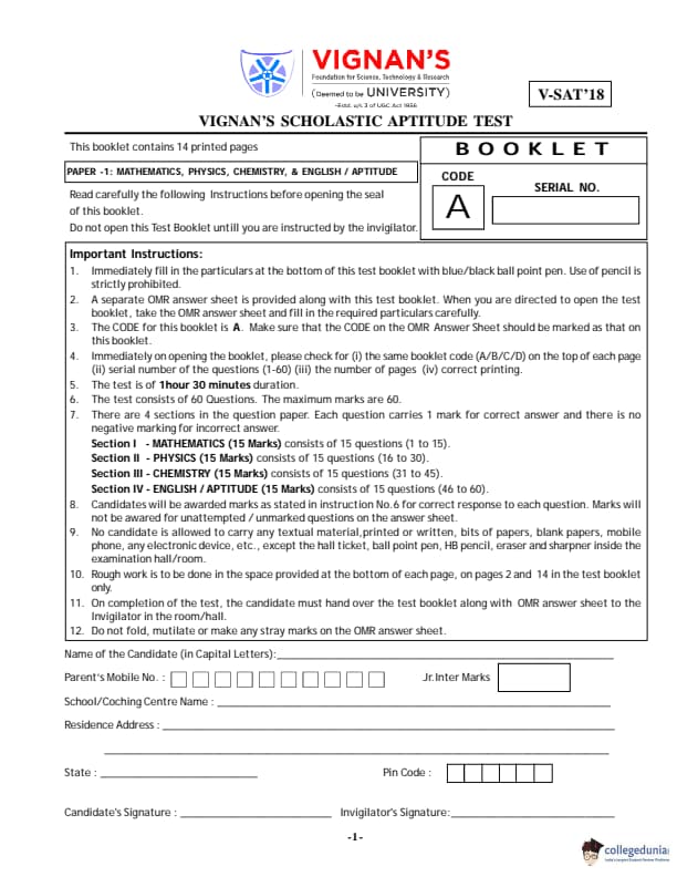 VSAT 2018 Paper A Question paper with answer key pdf is available for download. The exam was successfully organized by Vignan�s University. The question paper comprised a total of 60 questions divided among four sections.