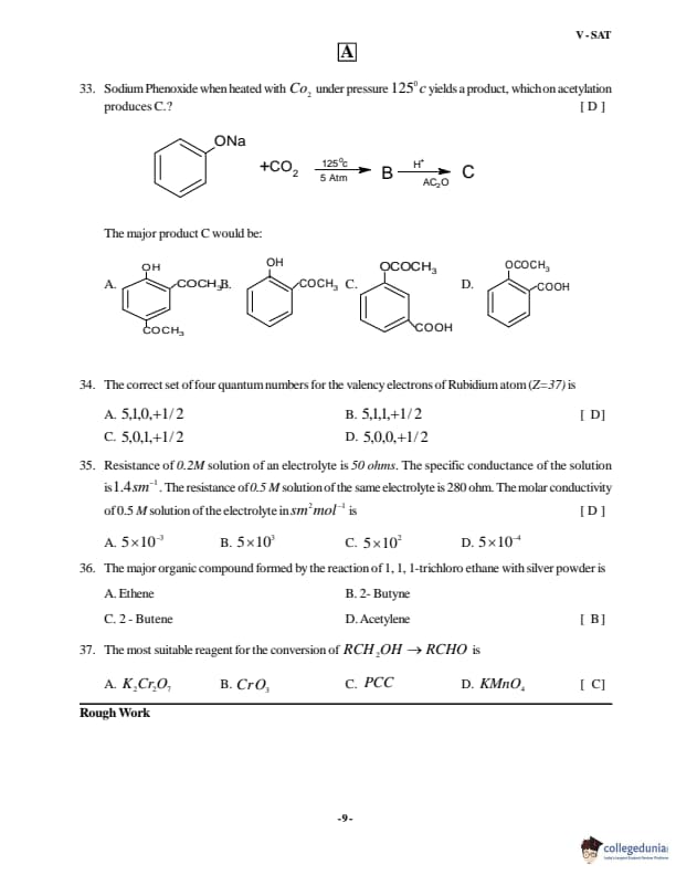 VSAT 2018 Paper A Question Paper with Answer Key PDFs