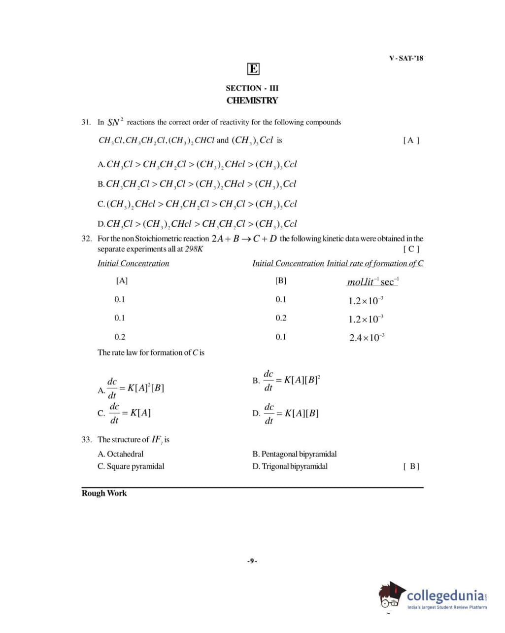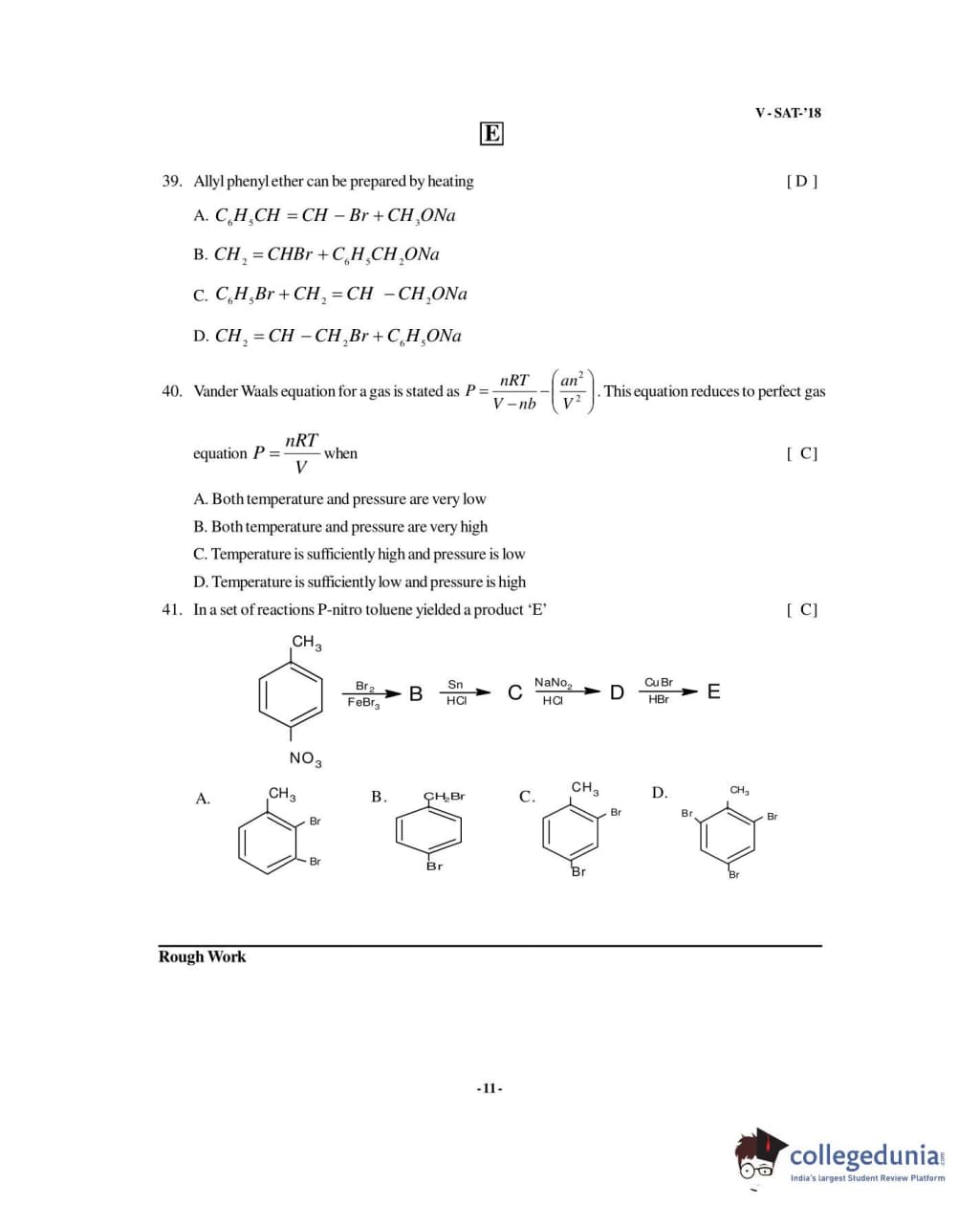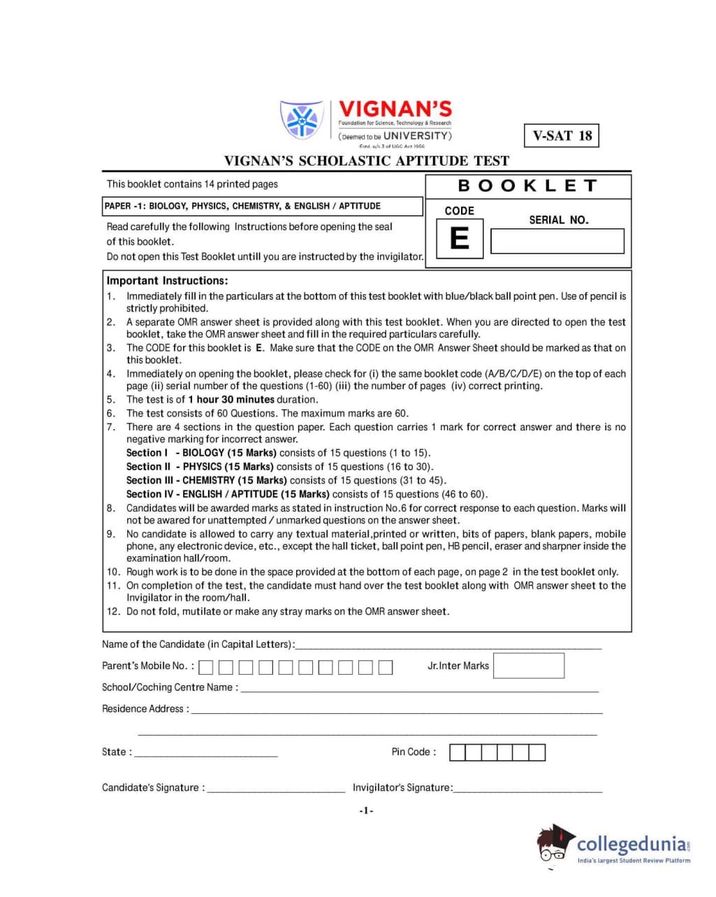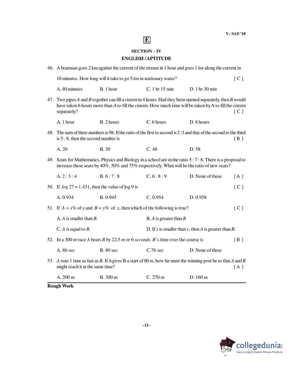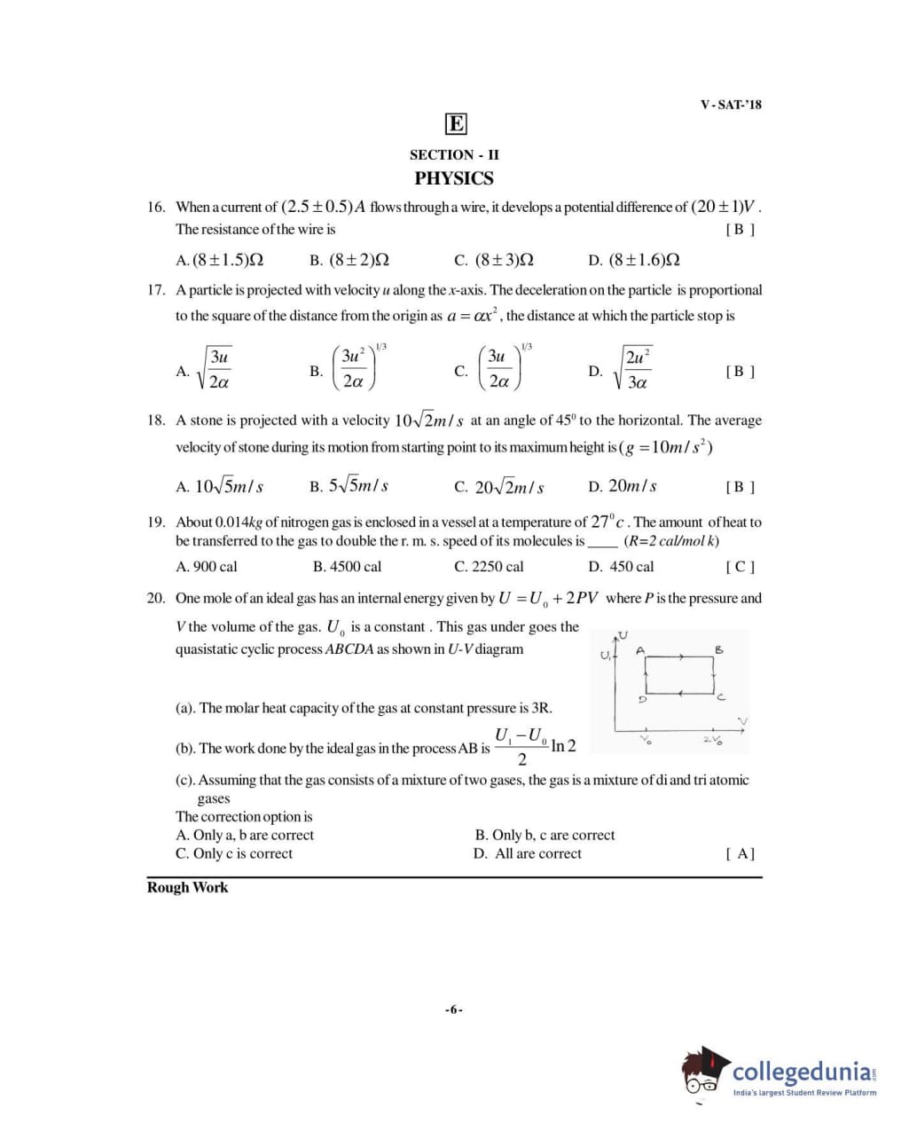 VSAT 2018 Paper E Question paper with answer key pdf is available for download. The exam was successfully organized by Vignan�s University. The question paper comprised a total of 60 questions divided among 4 sections.