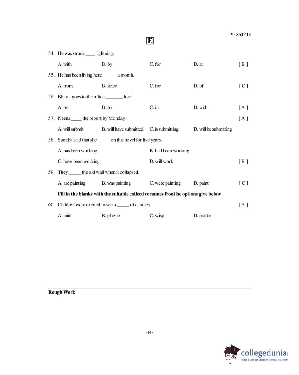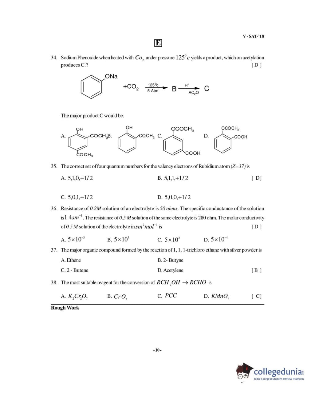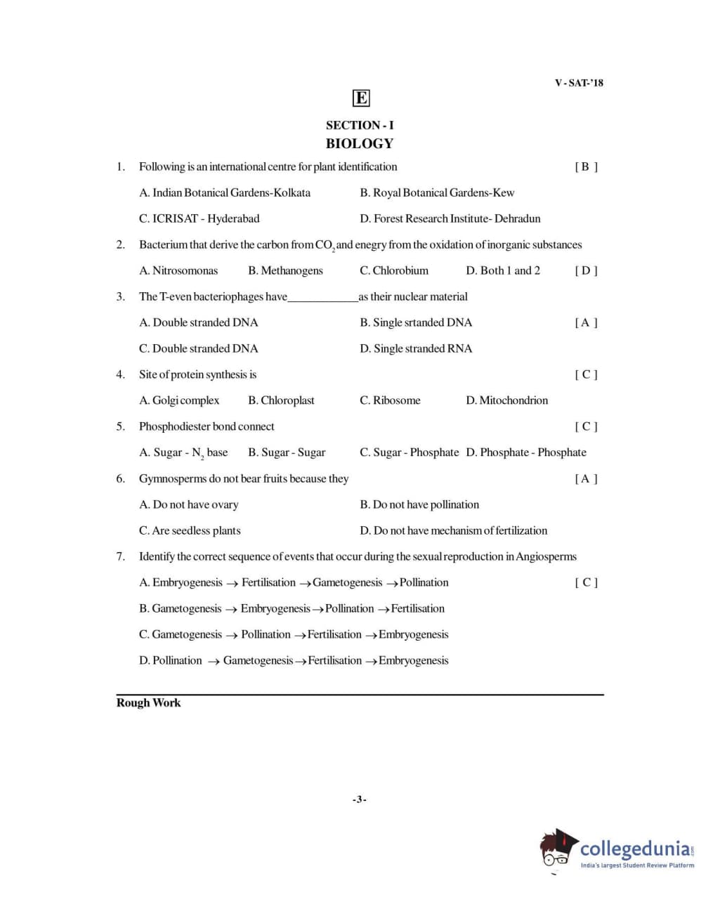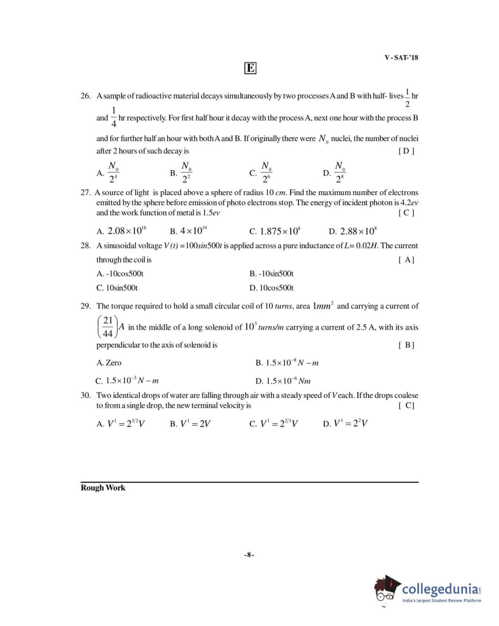 VSAT 2018 Paper E Question Paper with Answer Key PDFs