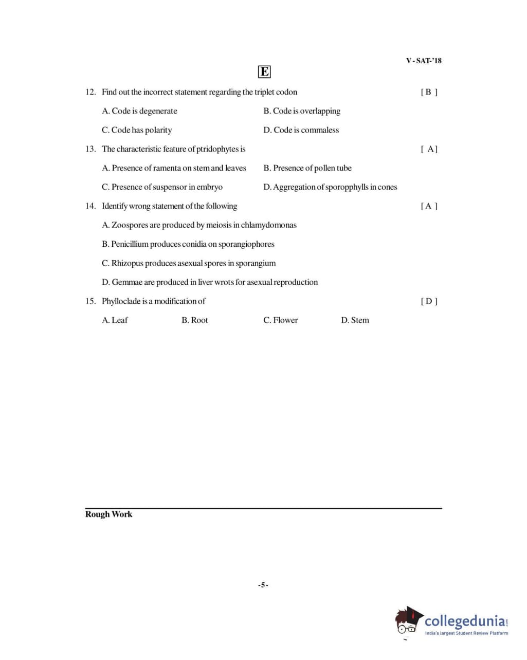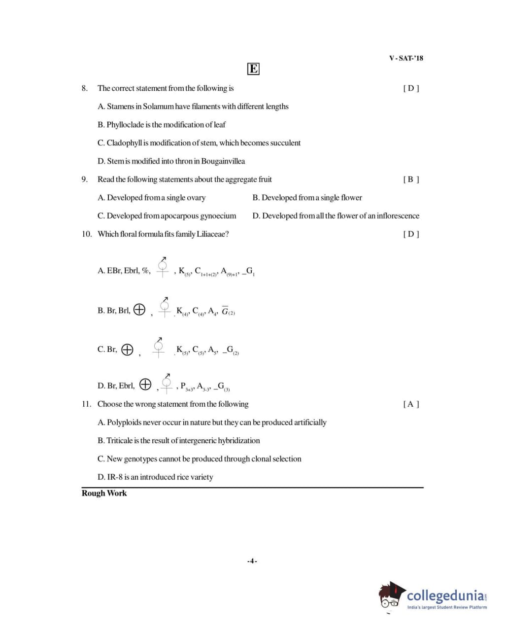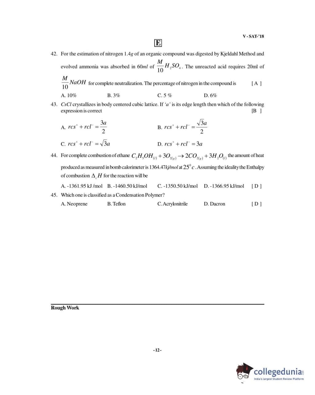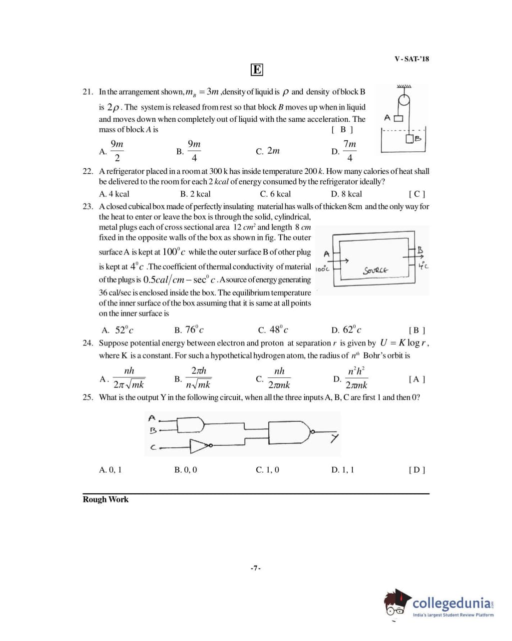 VSAT 2018 Paper E Question Paper with Answer Key PDFs
