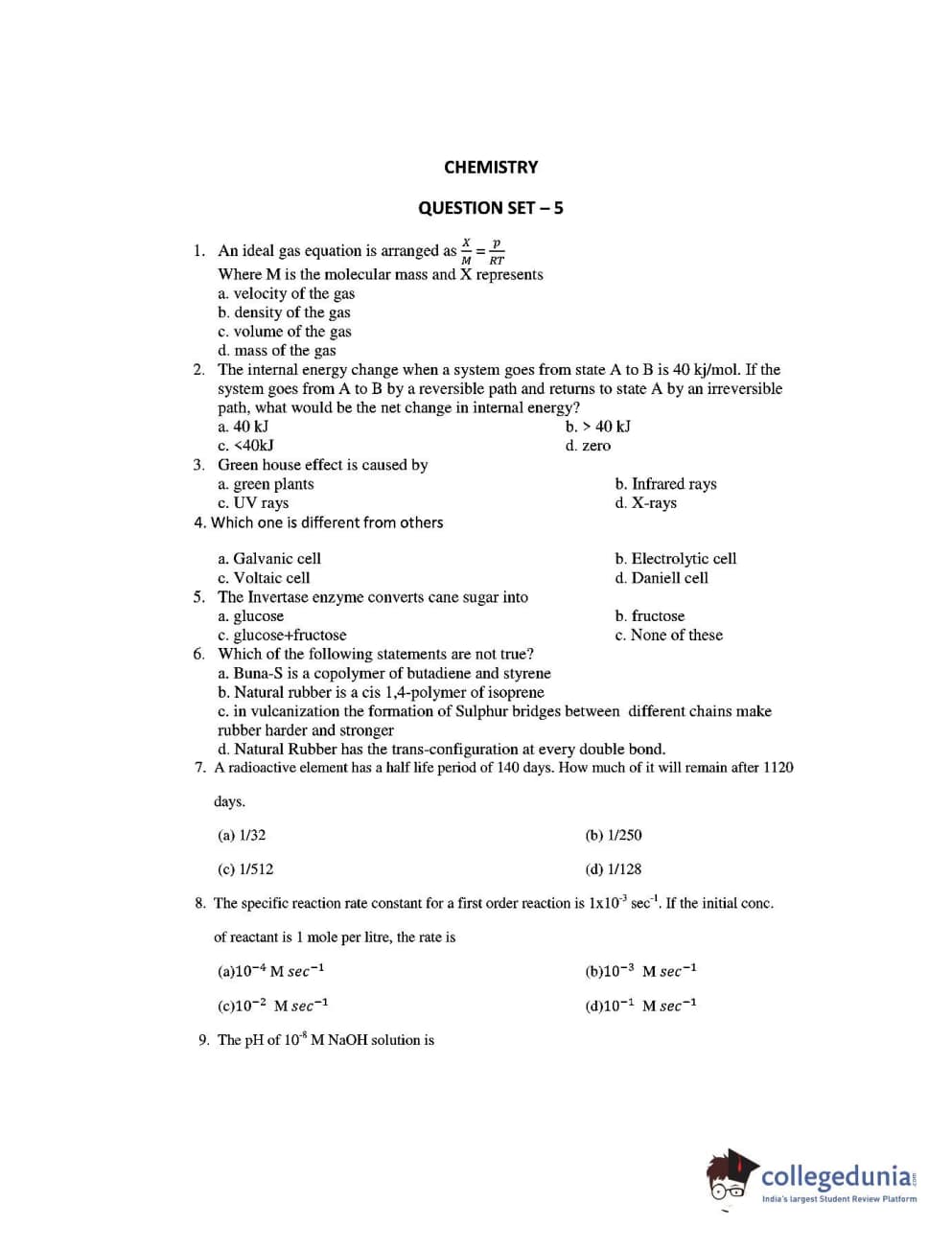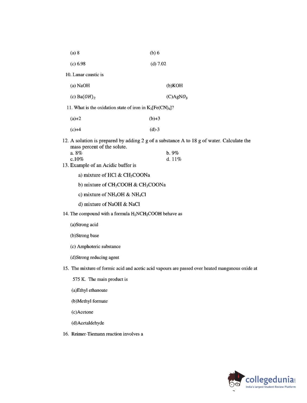 CUEE 2016 B-SC AG. -CHEMISTRY SET 5 Question Paper with Answer Key PDFs