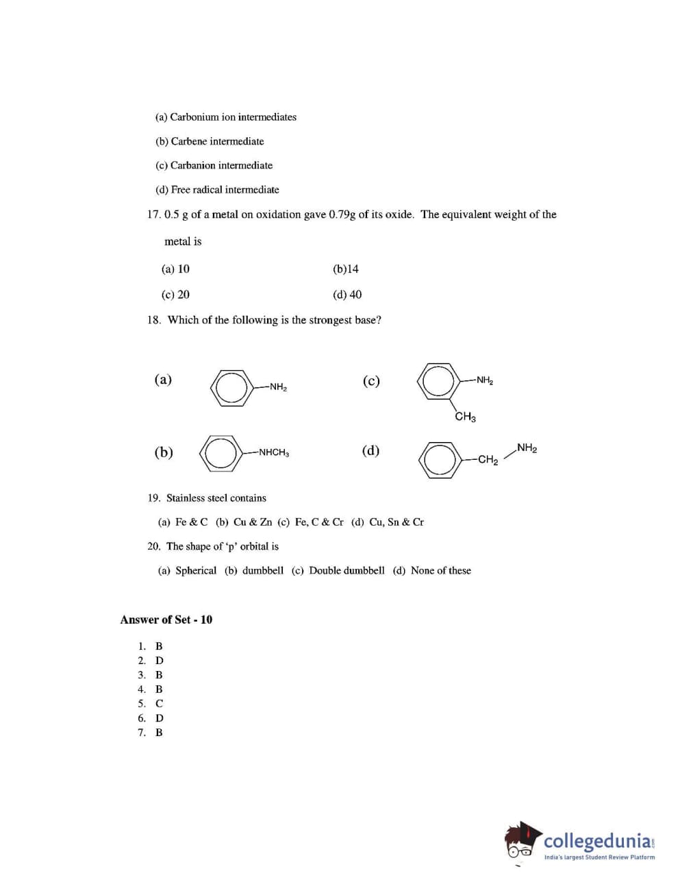 CUEE 2016 B-SC AG. -CHEMISTRY SET 5 Question paper with answer key pdf is available for download. The exam was successfully organized by Chhattisgarh Professional Examination Board. The question paper comprised a total of 20 questions.