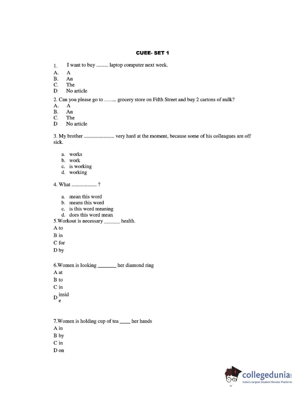 CUEE 2016 B-SC AG. ENGLISH SET 1 Question Paper with Answer Key PDFs