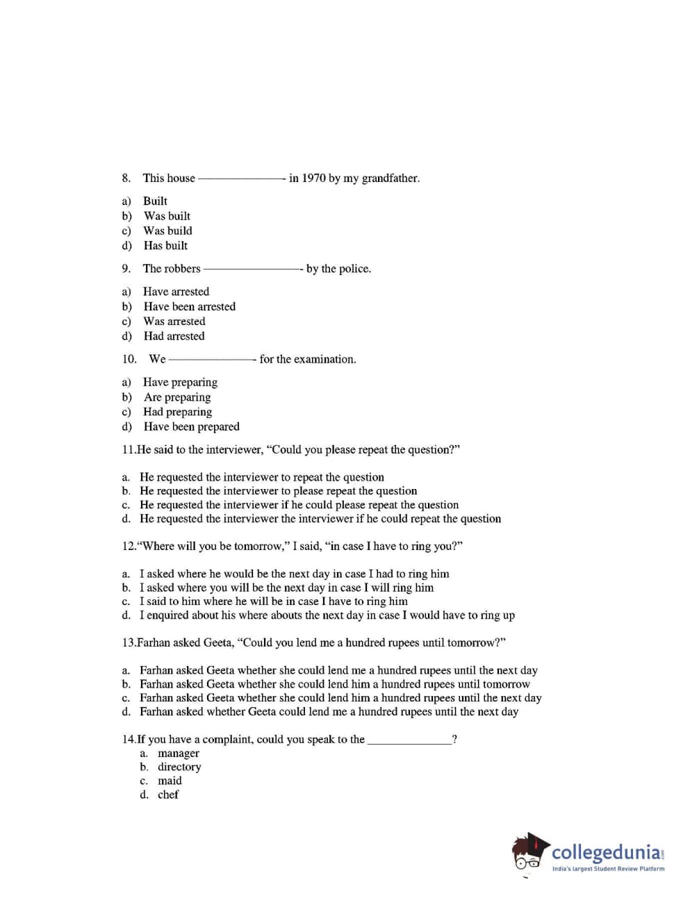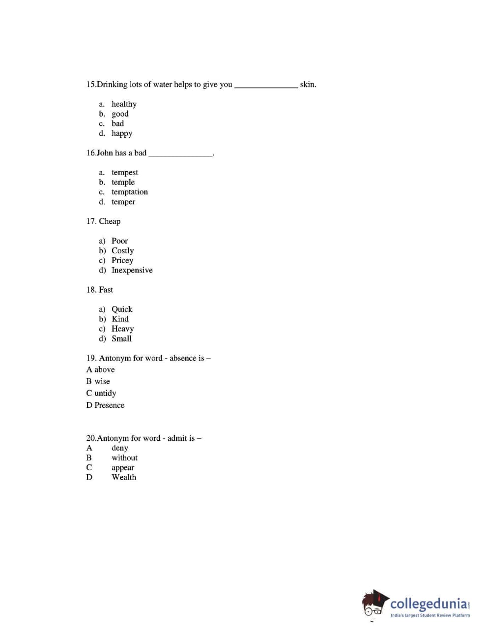CUEE 2016 B-SC AG. ENGLISH SET 1 Question paper with answer key pdf is available for download. The exam was successfully organized by Chhattisgarh Professional Examination Board. The question paper comprised a total of 20 questions.