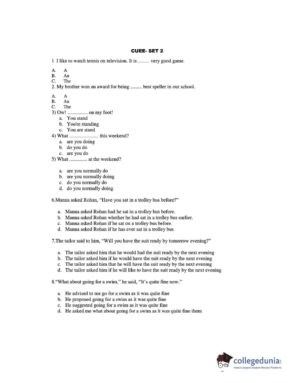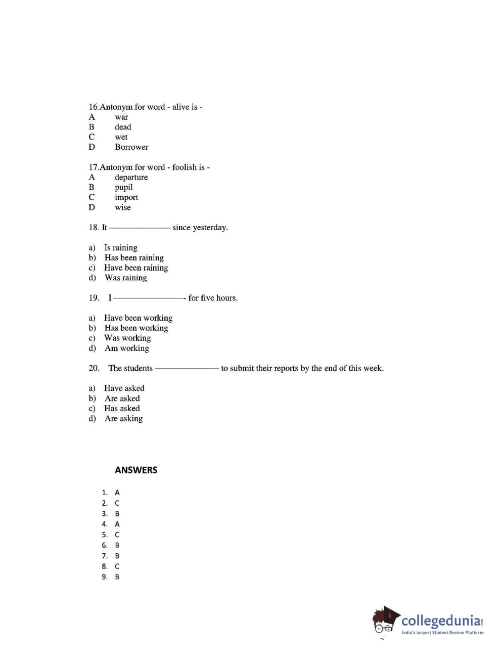 CUEE 2016 B-SC AG. ENGLISH SET 2 Question Paper with Answer Key PDFs