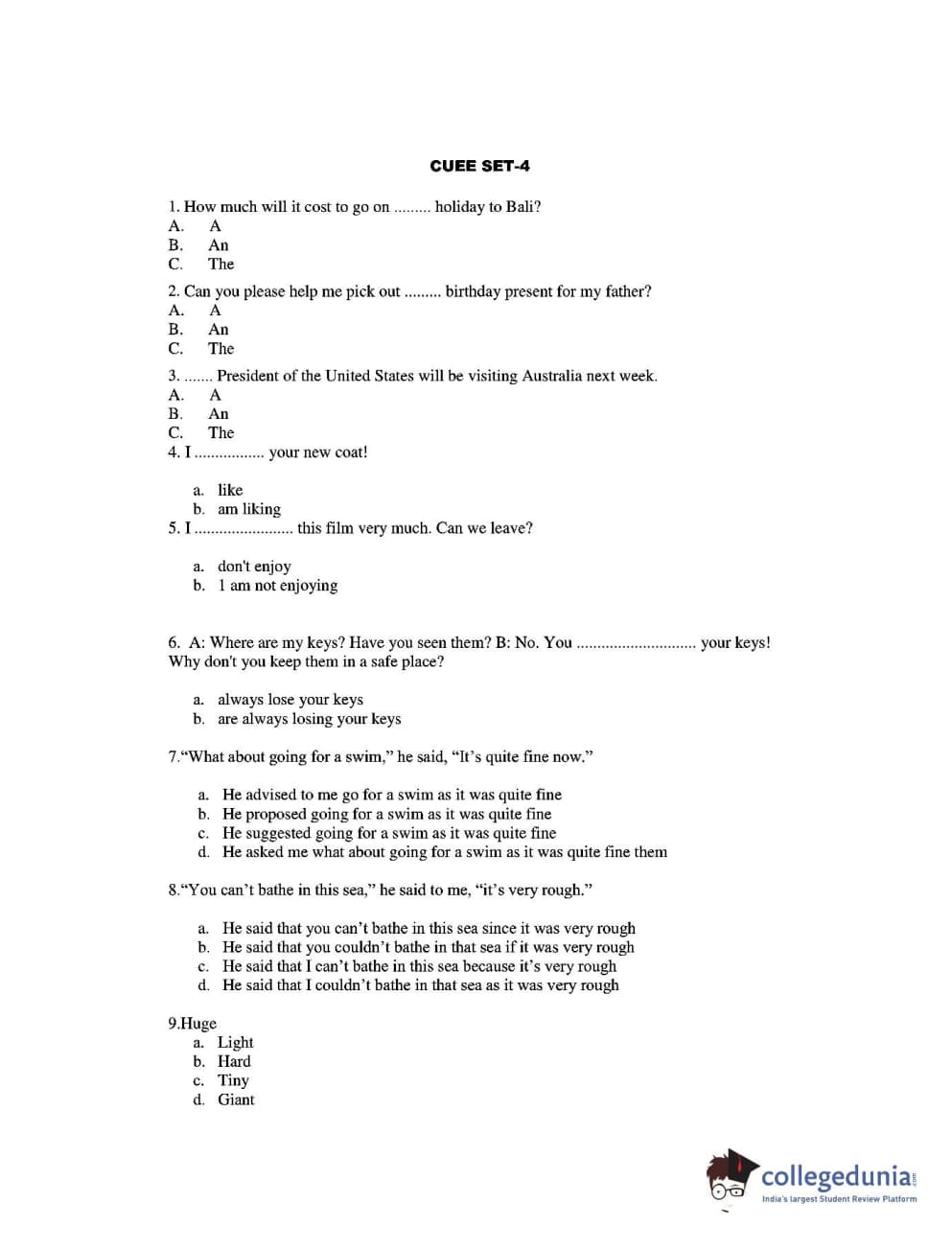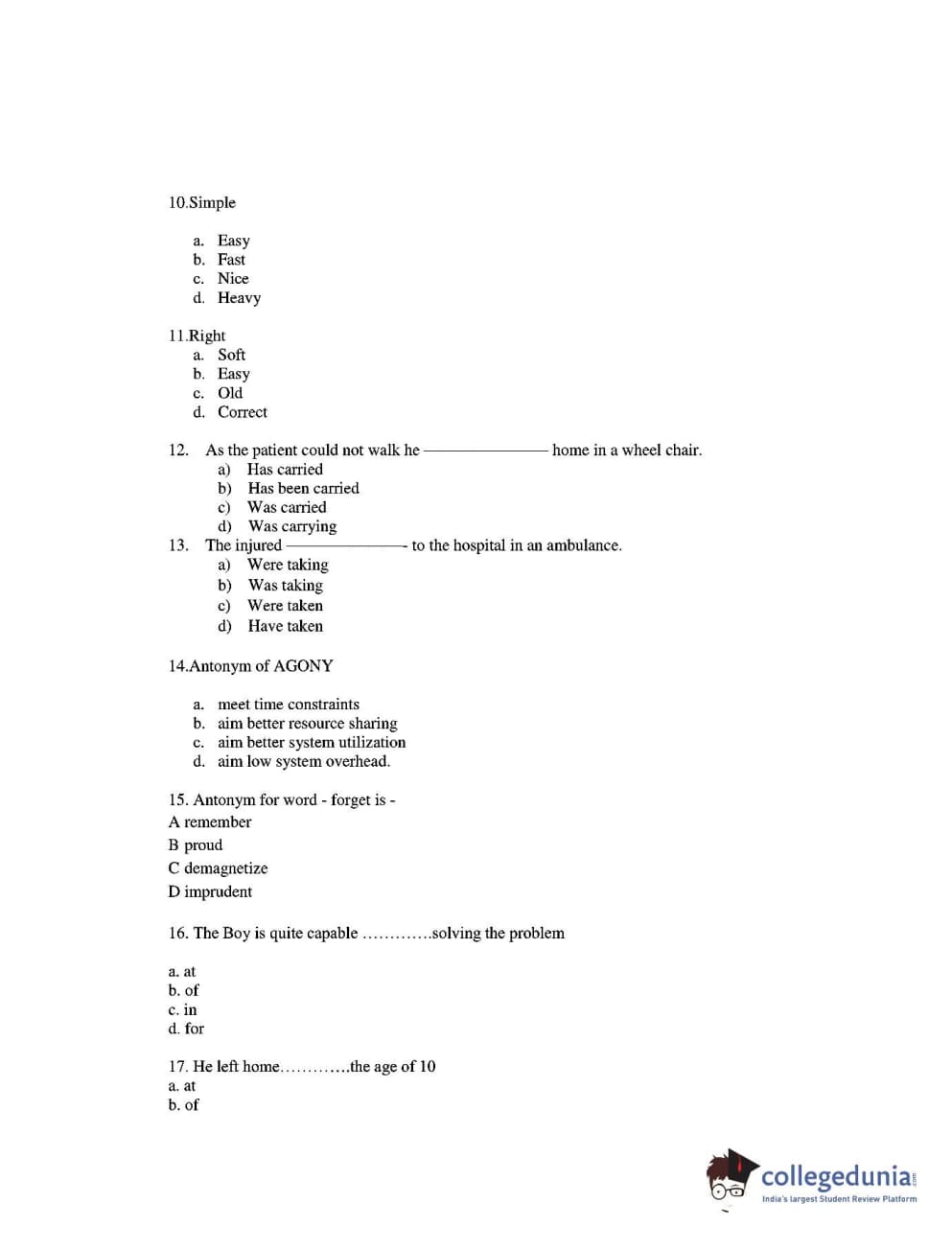 CUEE 2016 B-SC AG. ENGLISH SET 4 Question paper with answer key pdf is available for download. The exam was successfully organized by Chhattisgarh Professional Examination Board. The question paper comprised a total of 20 questions.