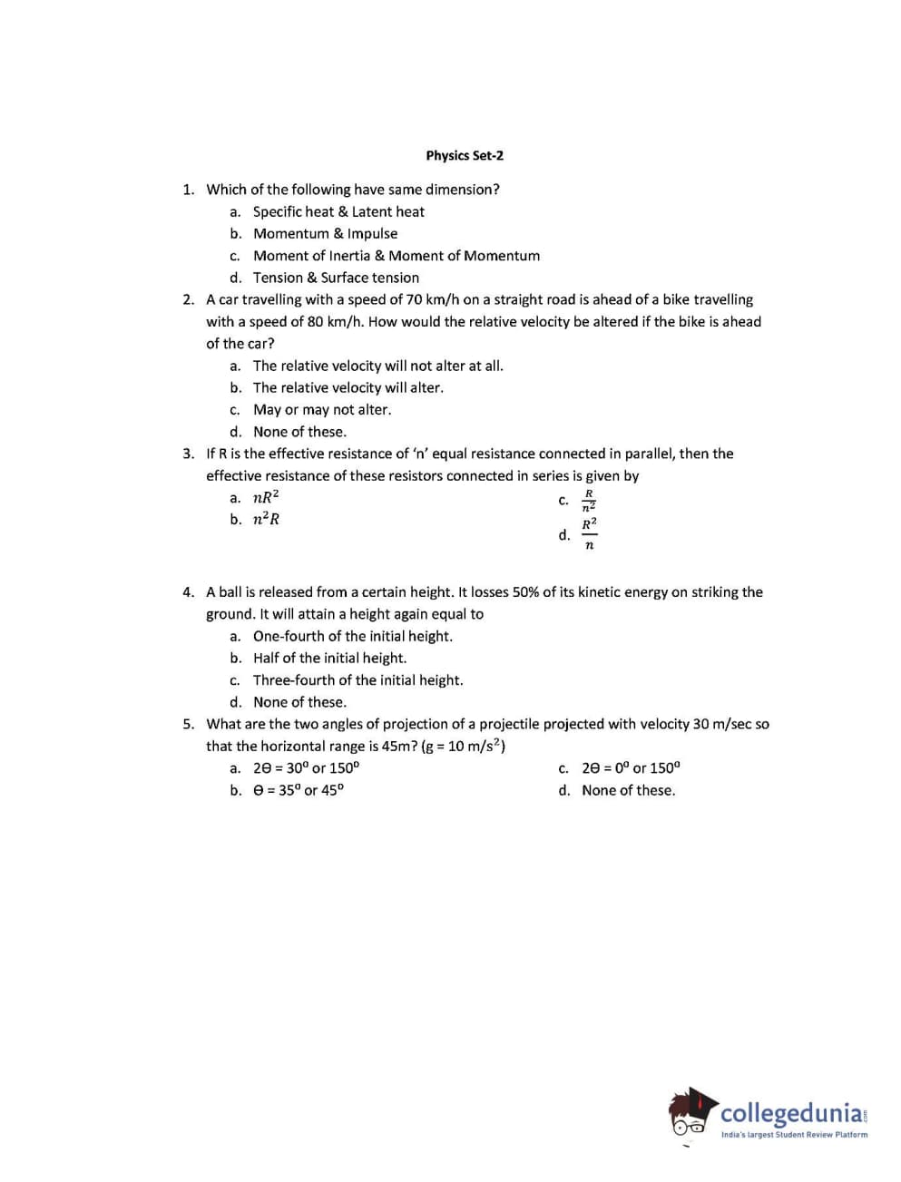 CUEE 2016 B-SC AG. PHYSICS SET 2 Question Paper with Answer Key PDFs