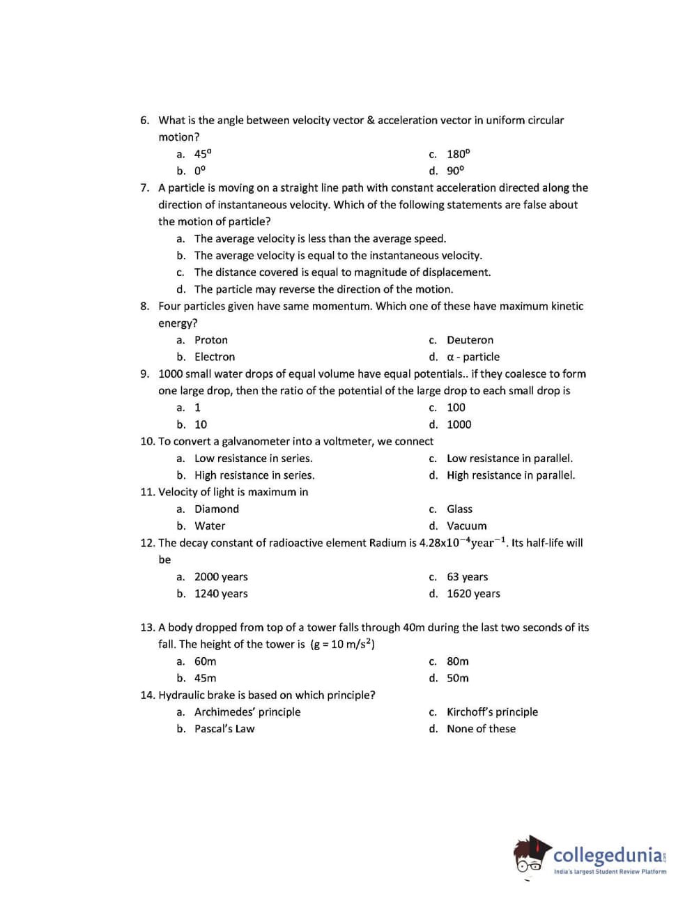 CUEE 2016 B-SC AG. PHYSICS SET 2 Question paper with answer key pdf is available for download. The exam was successfully organized by Chhattisgarh Professional Examination Board. The question paper comprised a total of 20 questions.