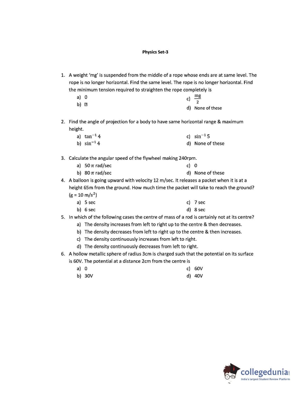 | CUEE 2016 B-SC AG. PHYSICS SET 3 Question Paper PDF | CUEE 2016 B-SC AG. PHYSICS SET 3 Answer Key PDF |
