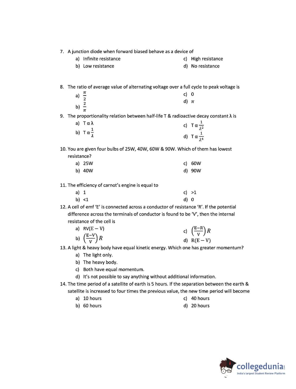 CUEE 2016 B-SC AG. PHYSICS SET 3 Question Paper with Answer Key PDFs