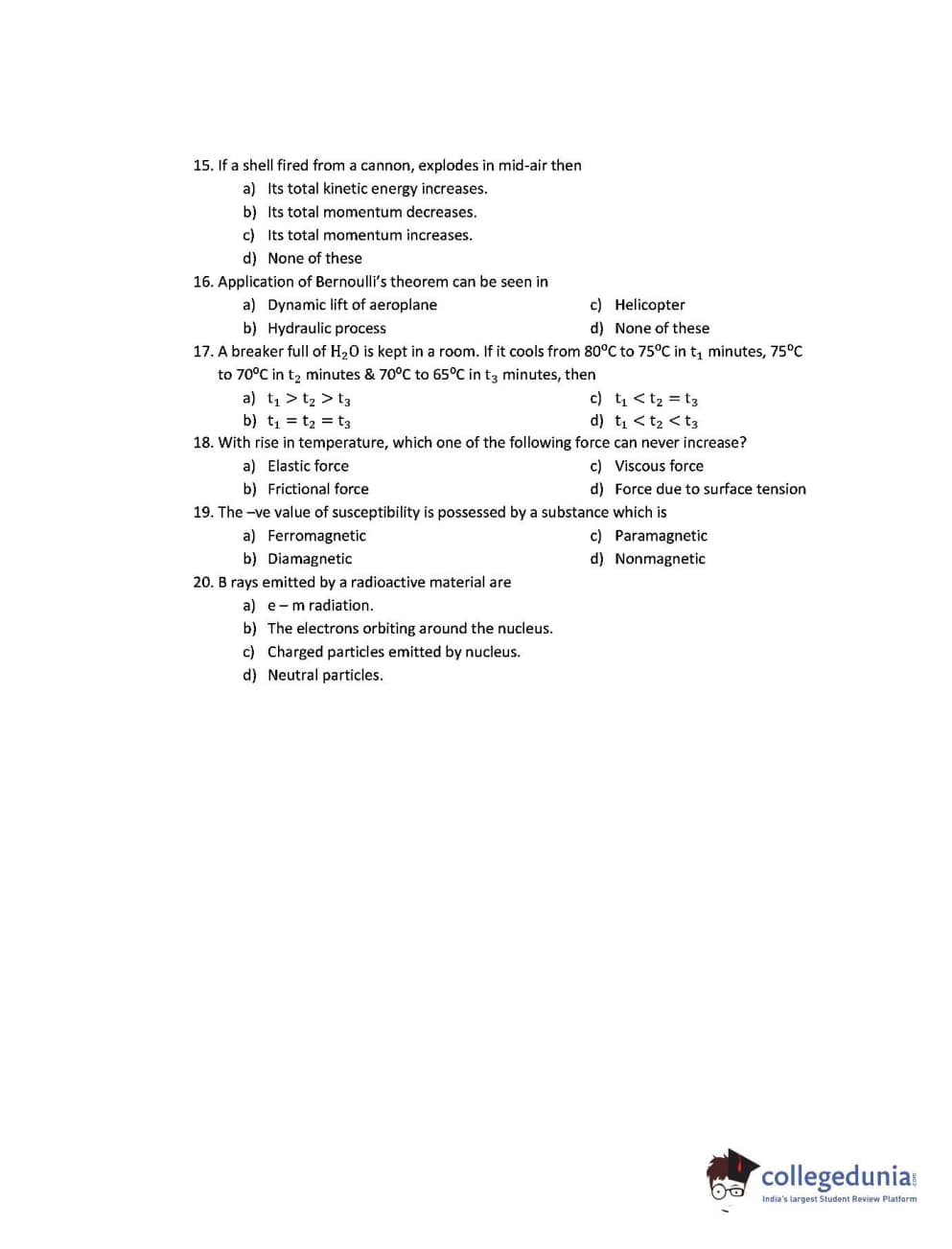 CUEE 2016 B-SC AG. PHYSICS SET 3 Question paper with answer key pdf is available for download. The exam was successfully organized by Chhattisgarh Professional Examination Board. The question paper comprised a total of 20 questions.