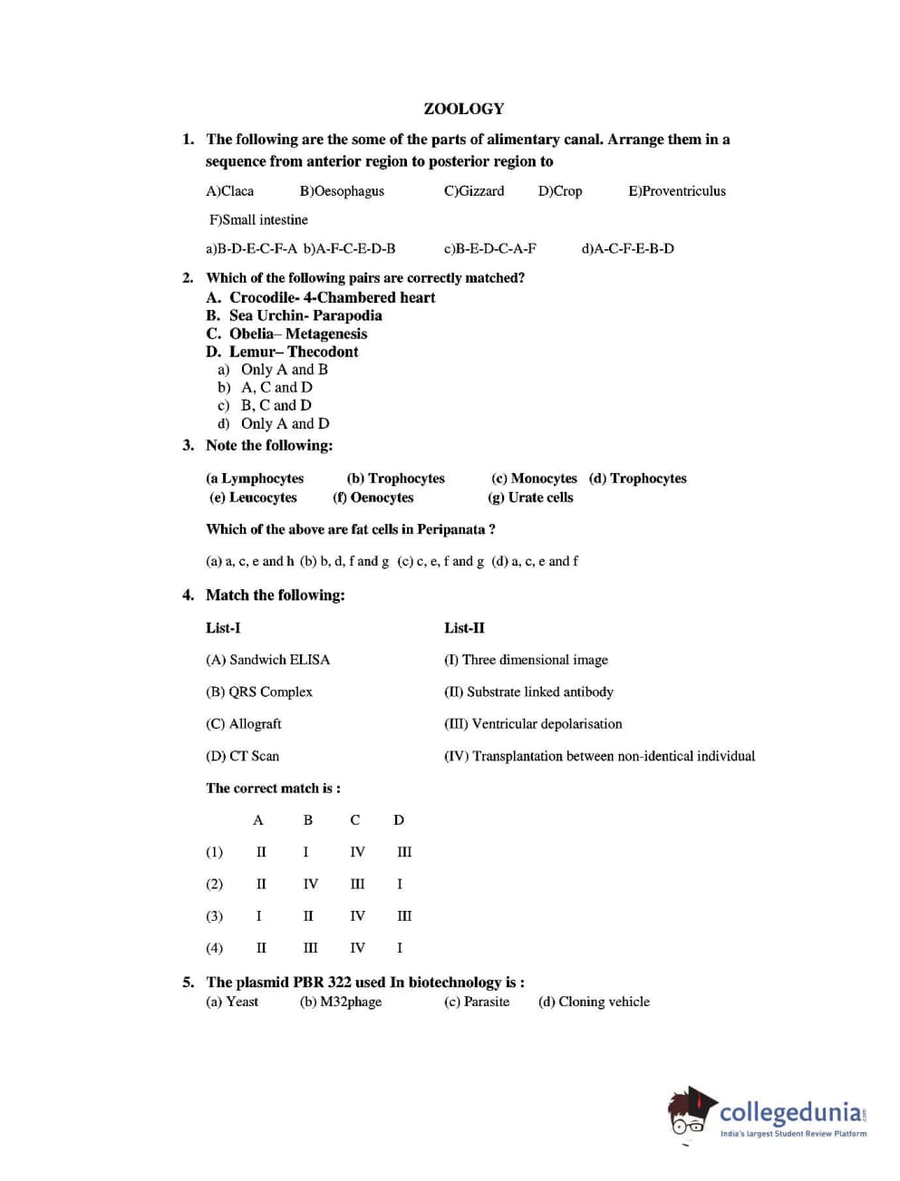 CUEE 2016 B-SC AG. ZOOLOGY SET 1 Question paper with answer key pdf is available for download. The exam was successfully organized by Chhattisgarh Professional Examination Board. The question paper comprised a total of 20 questions.