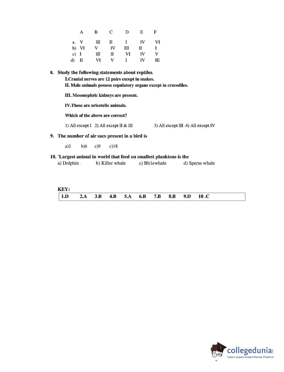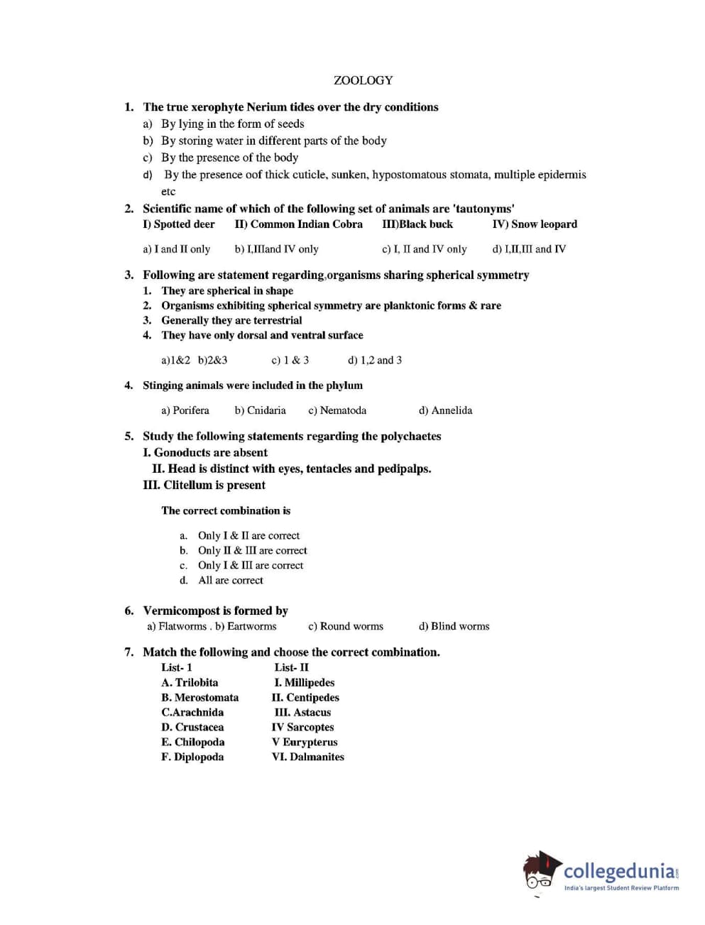 CUEE 2016 B-SC AG. ZOOLOGY SET 2 Question Paper with Answer Key PDFs