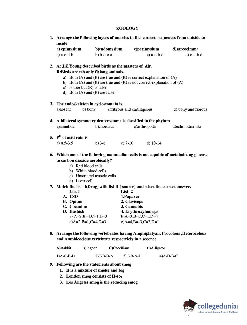 CUEE 2016 B-SC AG. ZOOLOGY SET 3 Question paper with answer key pdf is available for download. The exam was successfully organized by Chhattisgarh Professional Examination Board. The question paper comprised a total of 20 questions.