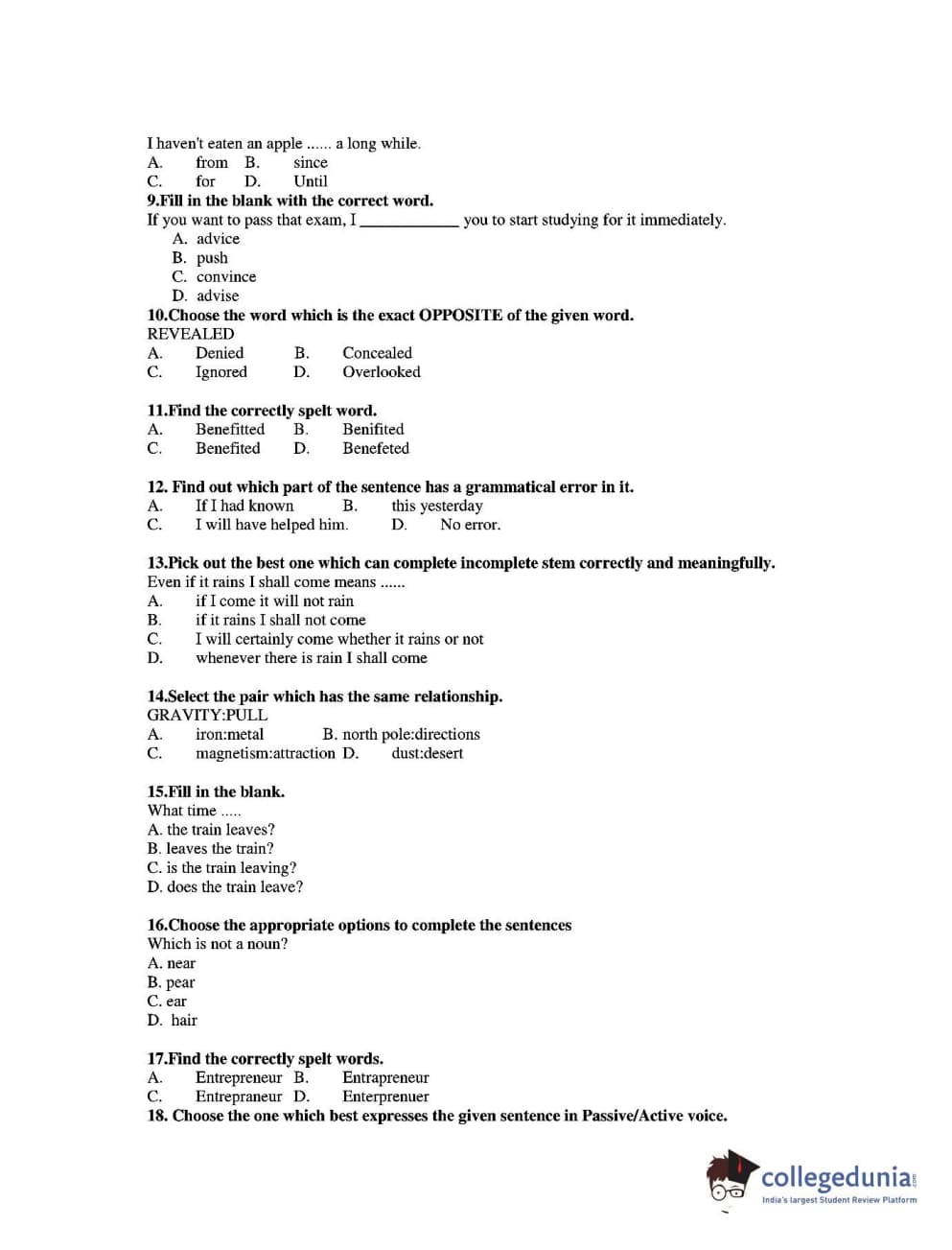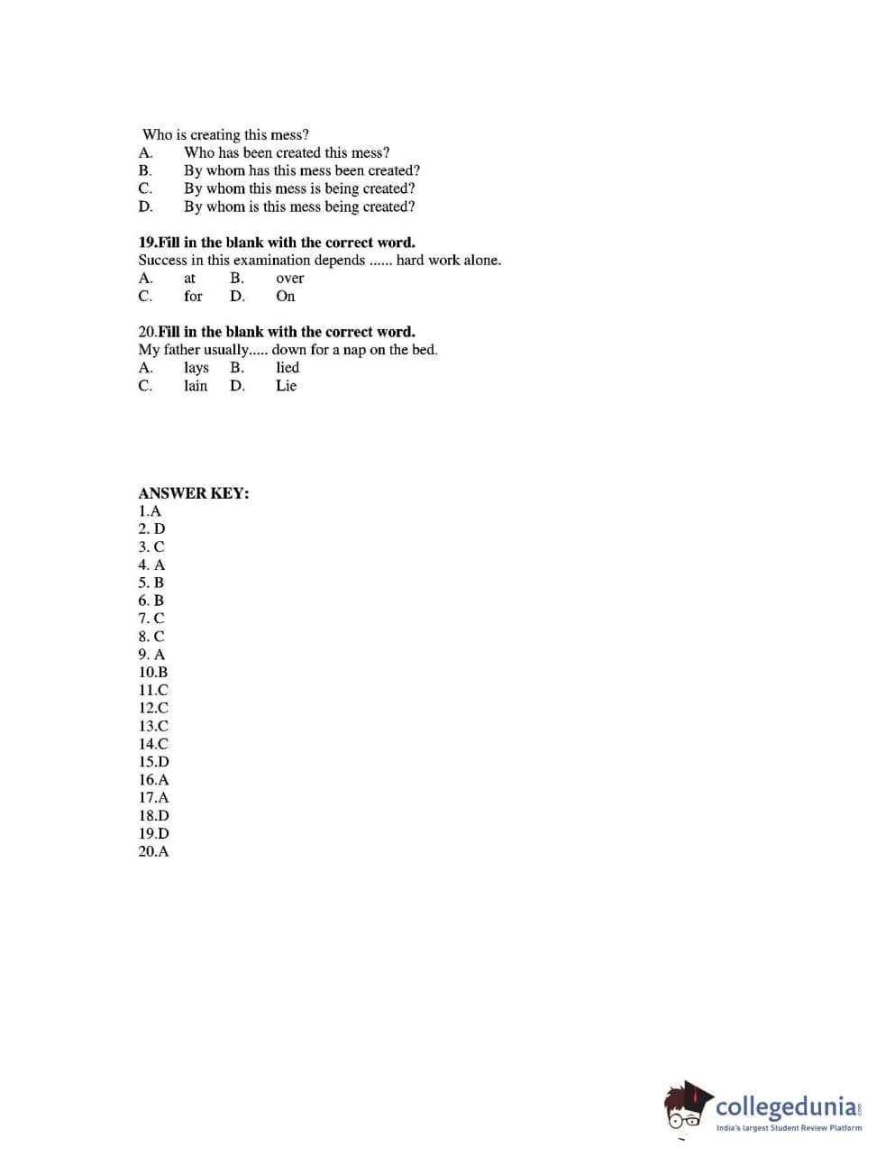 CUEE 2016 B.TECH ENGLISH SET-5 Question paper with answer key pdf is available for download. The exam was successfully organized by Chhattisgarh Professional Examination Board. The question paper comprised a total of 20 questions.