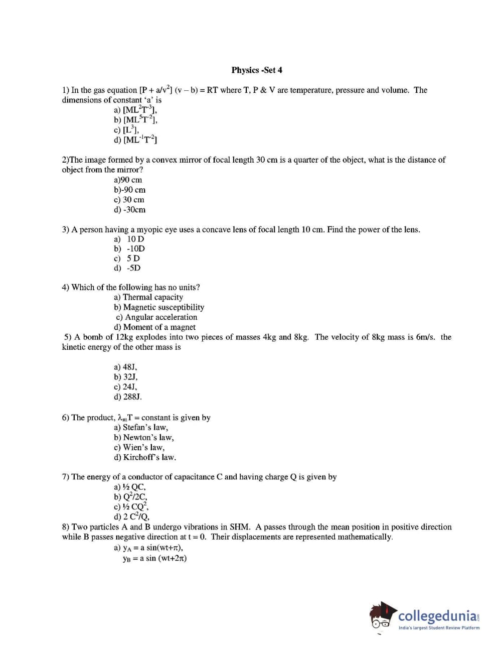 CUEE 2016 B.TECH PHYSICS SET-4 Question Paper with Answer Key PDFs