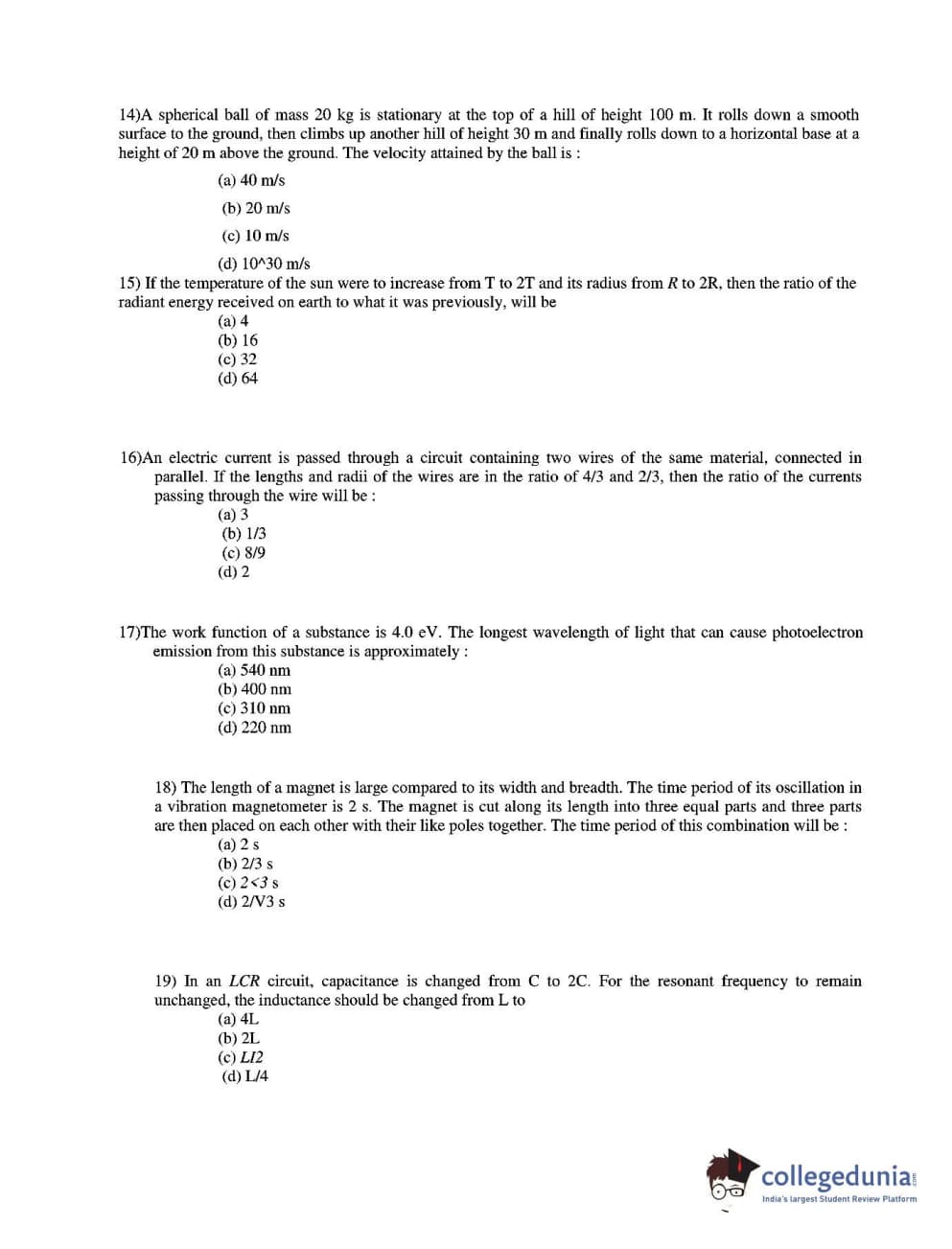 CUEE 2016 B.TECH PHYSICS SET-4 Question paper with answer key pdf is available for download. The exam was successfully organized by Chhattisgarh Professional Examination Board. The question paper comprised a total of 20 questions.