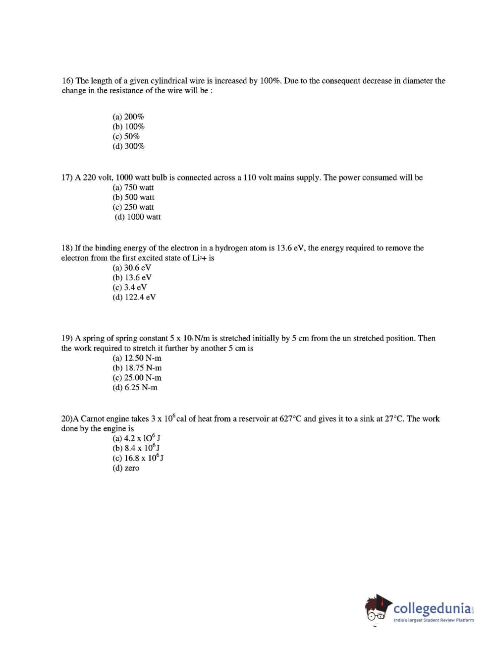CUEE 2016 B.TECH PHYSICS SET-5 Question paper with answer key pdf is available for download. The exam was successfully organized by Chhattisgarh Professional Examination Board. The question paper comprised a total of 20 questions.