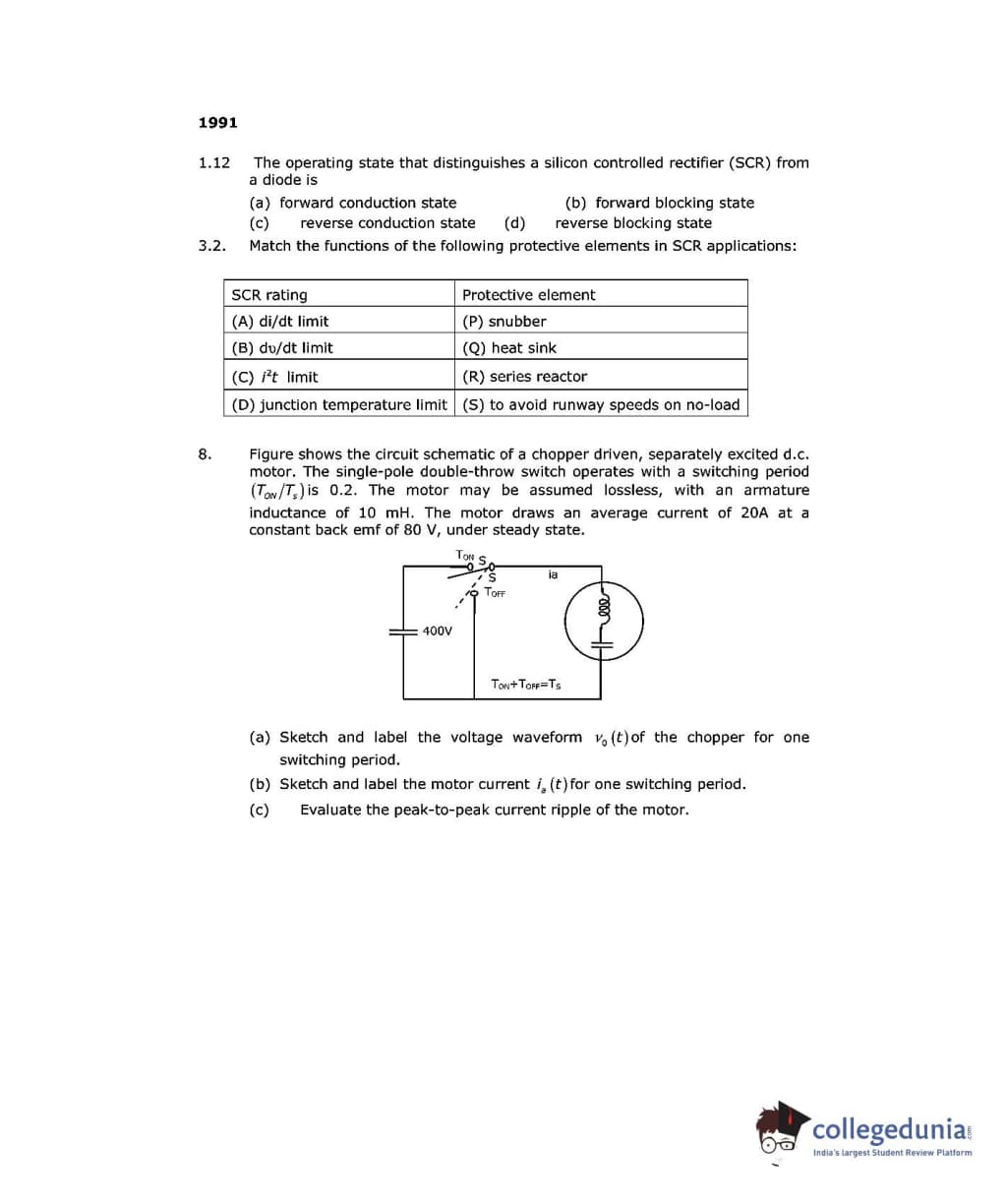 GATE 1991 Electrical Engineering (EE) Question Paper with Answer Key pdf is available for download. The exam was conducted by IIT Madras. The question paper comprised a total of 26 questions from General Aptitude and Electrical Engineering (EE) topics.