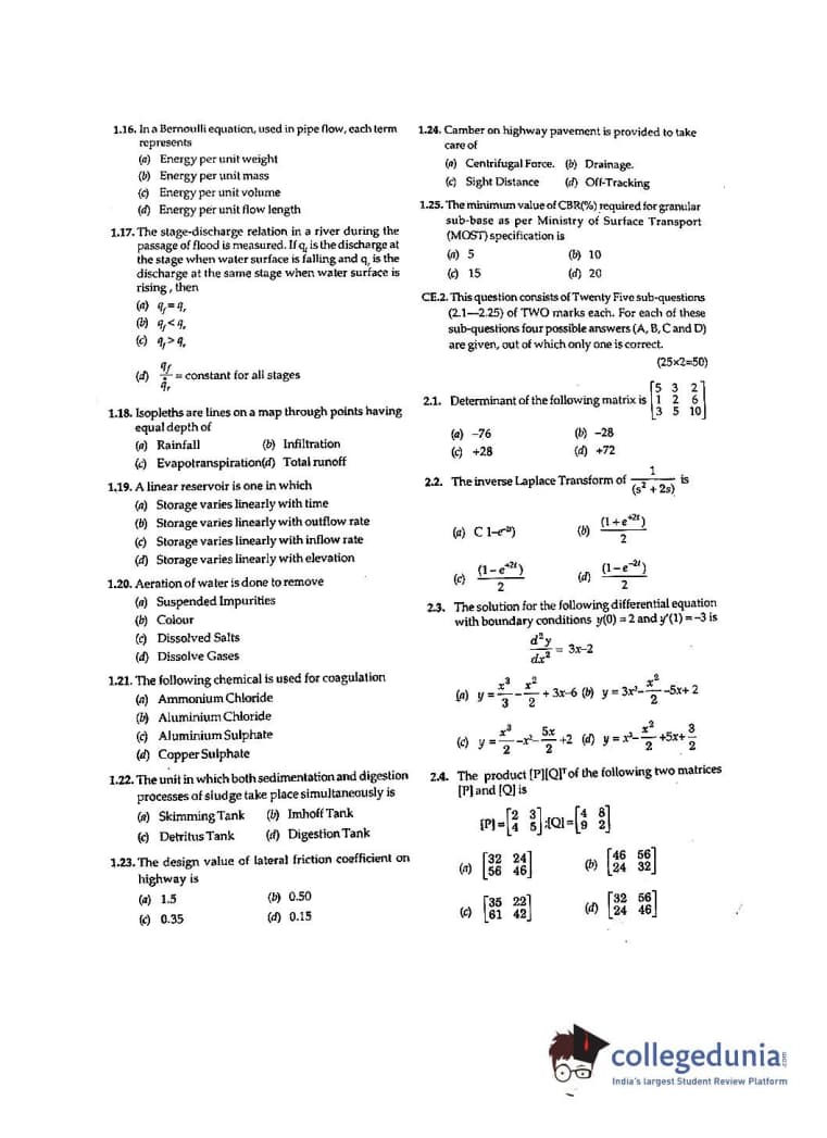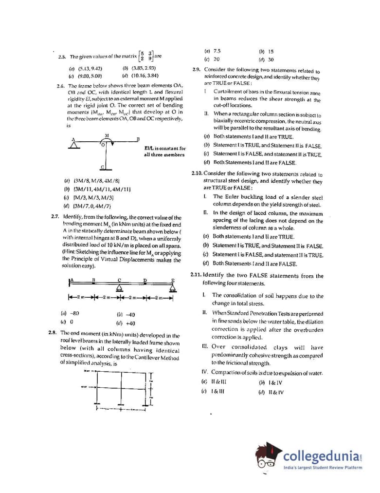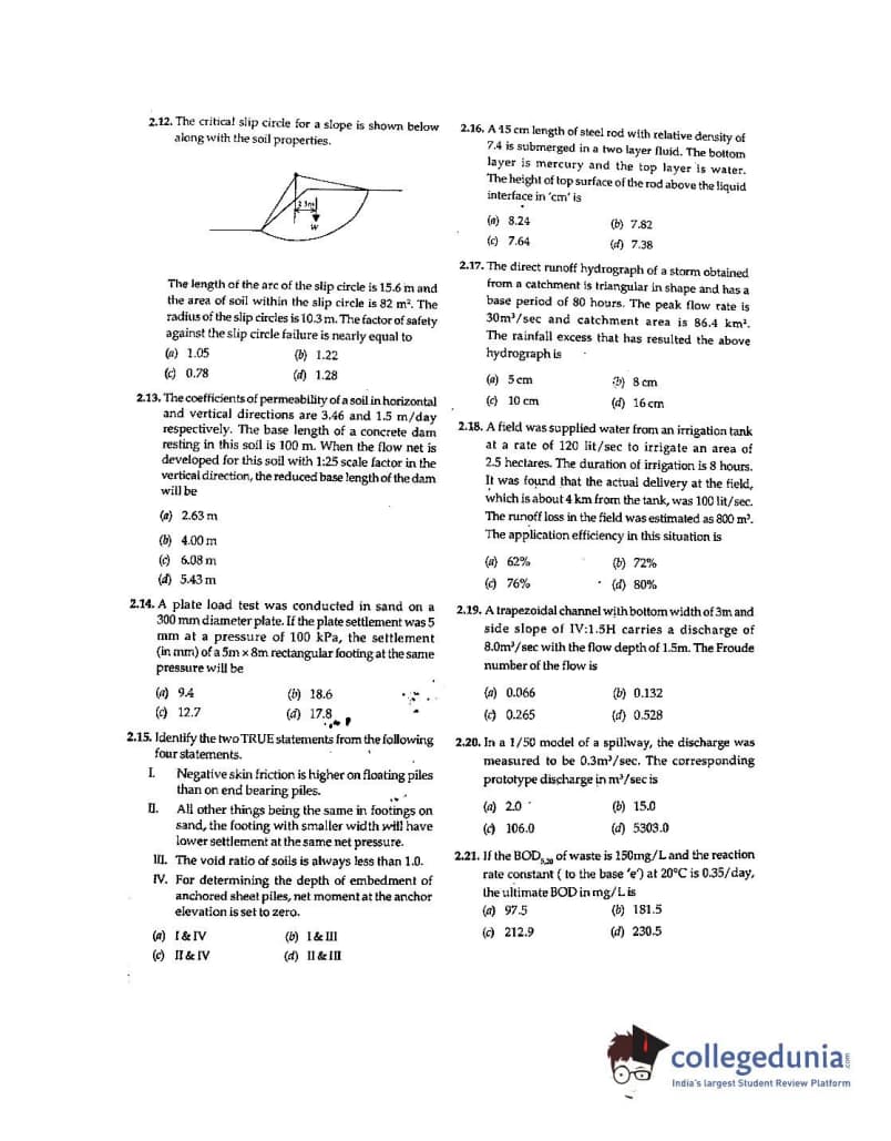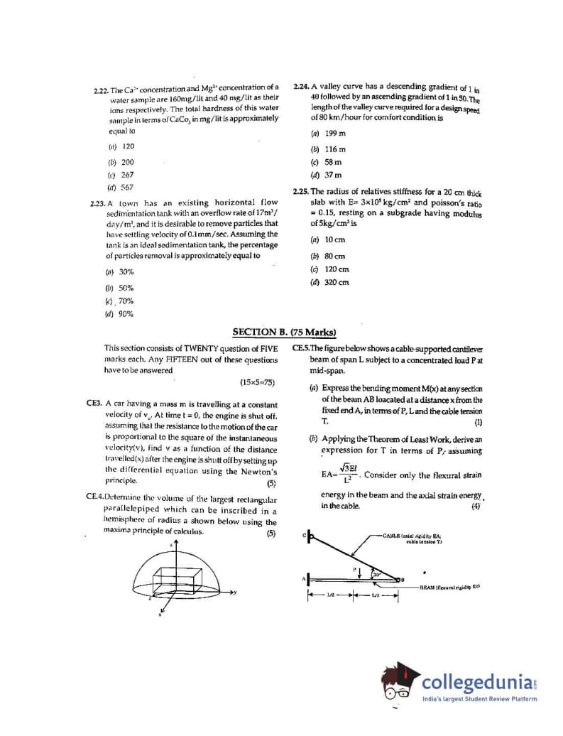GATE 2001 Civil Engineering (CE) Question Paper with Answer Key pdf is available for download. The exam was conducted by IIT Kanpur . The question paper comprised a total of 70 questions from General Aptitude and Civil Engineering (CE) topics.