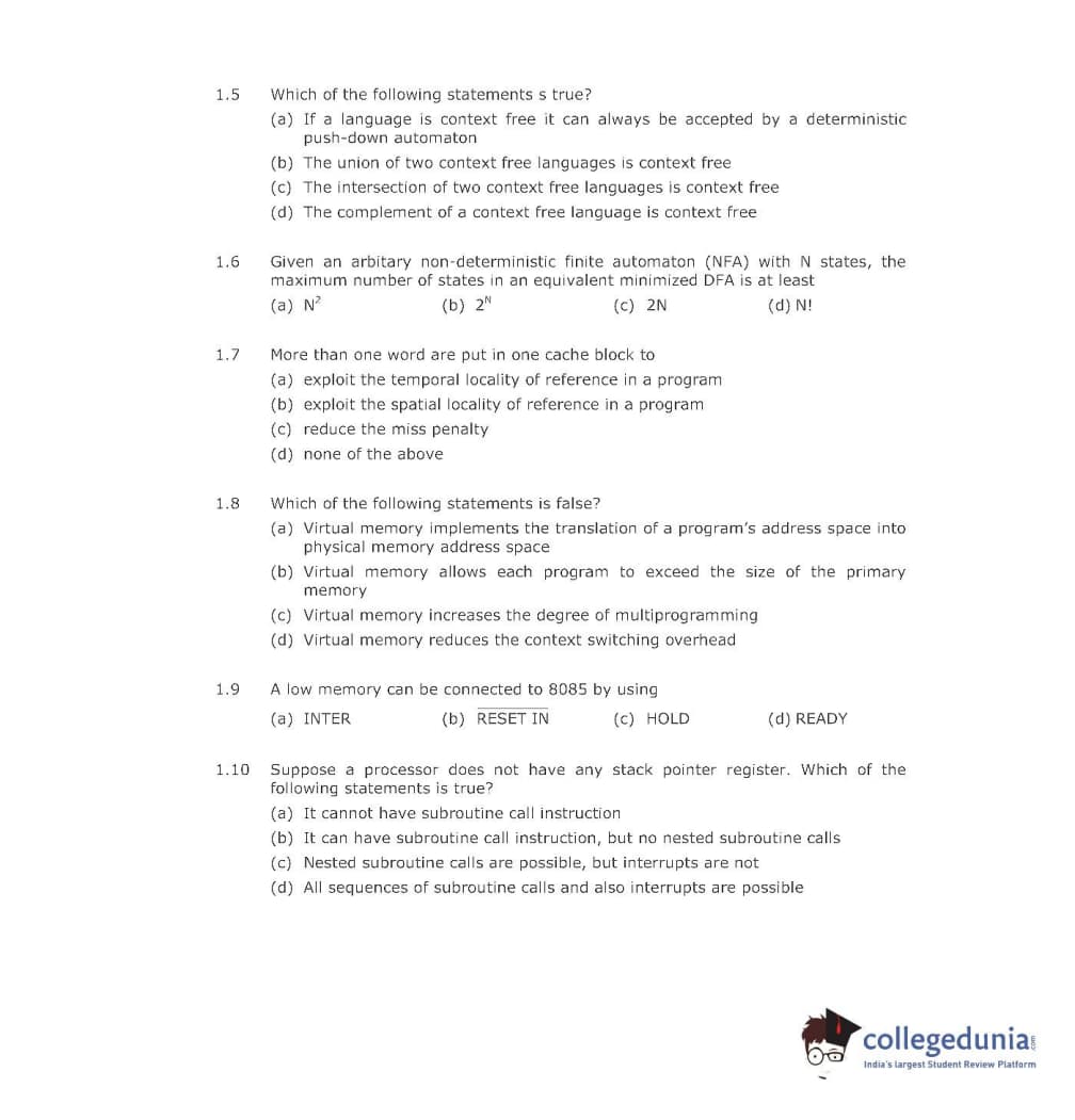 | GATE 2001 CS Question Paper PDF | GATE 2001 CS Answer Key PDF |