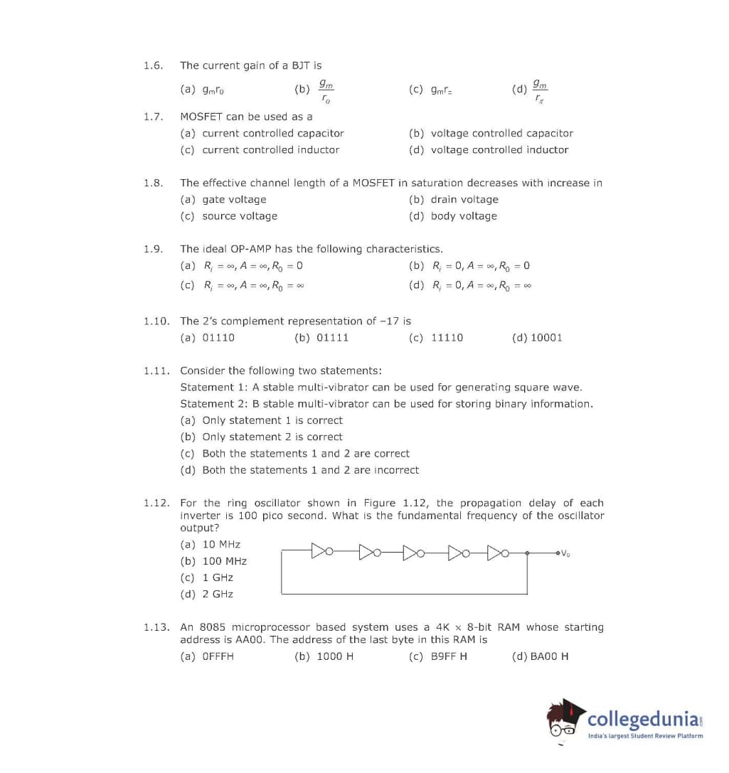 GATE 2001 Electronics and Communication Engineering (EC) Question Paper with Answer Key pdf is available for download. The exam was conducted by IIT Kanpur . The question paper comprised a total of 70 questions from General Aptitude and Electronics and Communication Engineering (EC) topics.