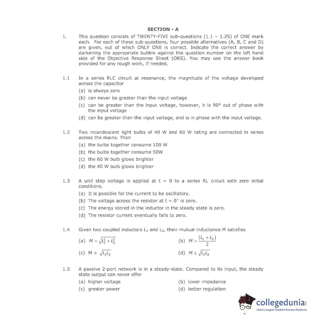 GATE 2001 Electrical Engineering (EE) Question Paper with Answer Key pdf is available for download. The exam was conducted by IIT Kanpur. The question paper comprised a total of 70 questions from General Aptitude and Electrical Engineering (EE) topics.