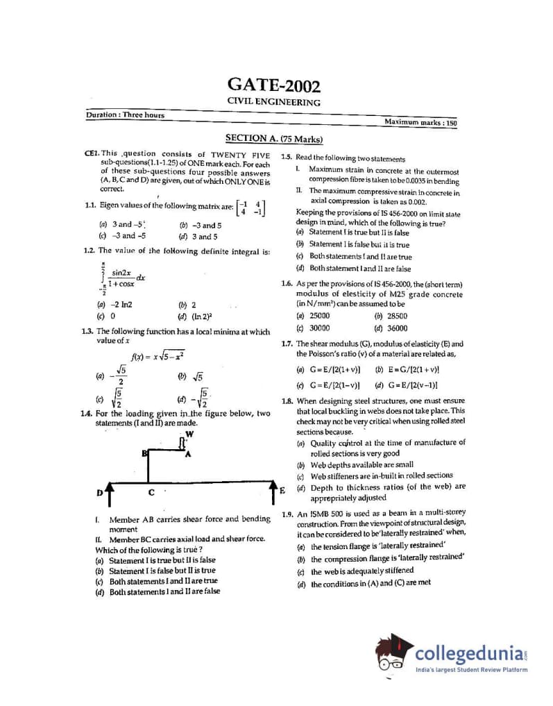 | GATE 2002 Civil Engineering (CE) Question Paper PDF | GATE 2002 Civil Engineering (CE) Answer Key PDF |