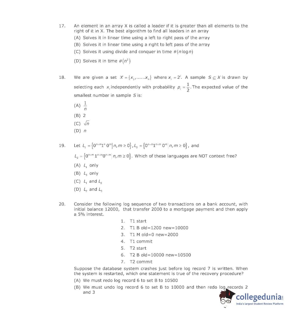GATE 2006 Computer Science and Information Technology (CS) Question Paper with Answer Key pdf is available for download. The exam was conducted by IIT Kharagpur on February 12, 2006. The question paper comprised a total of 85 questions from General Aptitude and Computer Science and Information Technology (CS) topics.