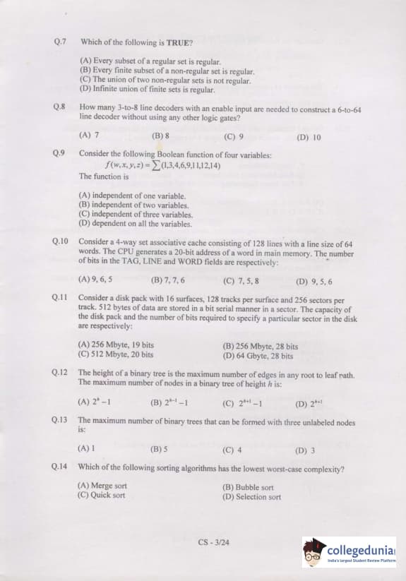 GATE 2007 Computer Science and Information Technology (CS) Question Paper with Answer Key PDFs (February 11)
