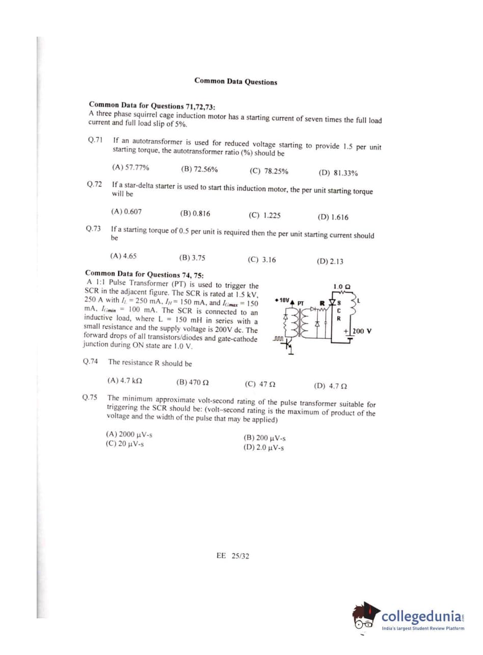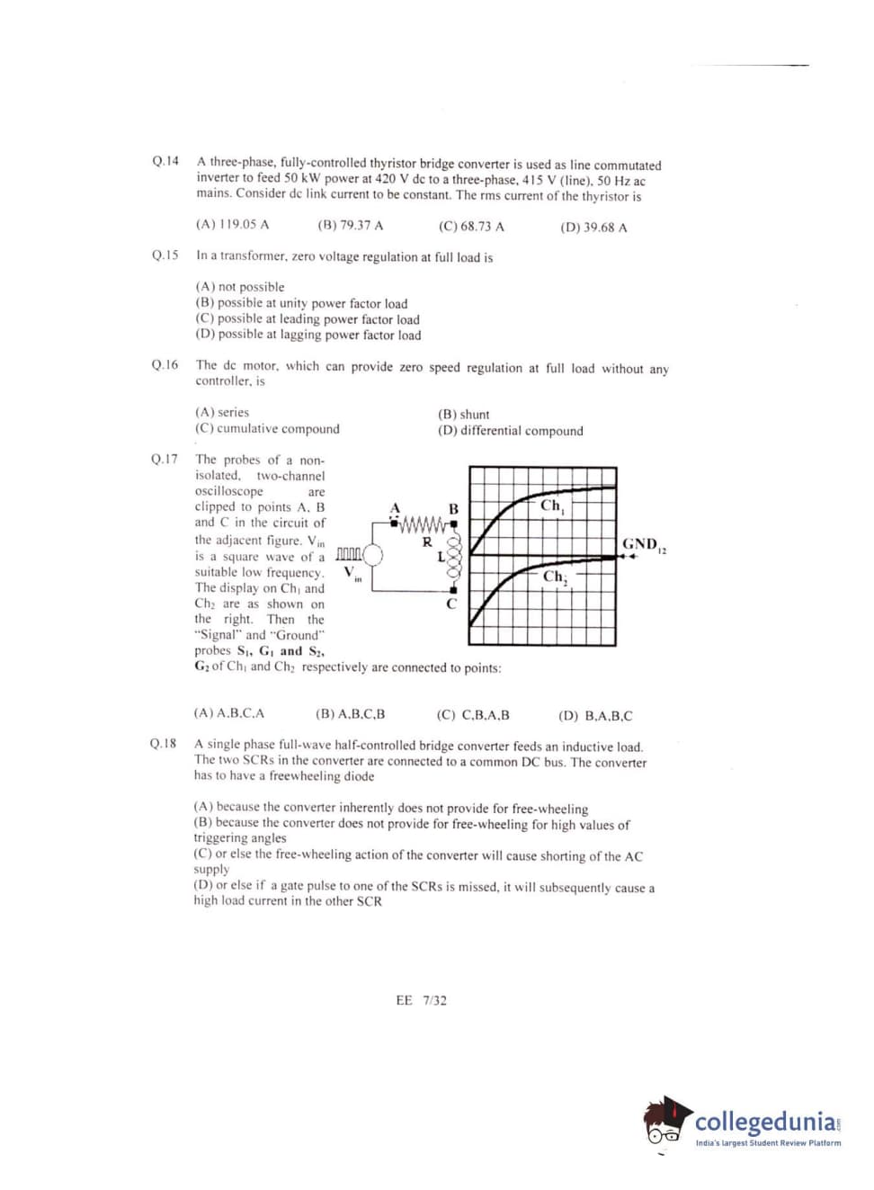 GATE 2007 Electrical Engineering (EE) Question Paper with Answer Key PDFs are available for download. GATE 2007 Electrical Engineering (EE) was conducted by IIT Kanpur on February 11, 2007. The paper consisted of 85 questions, it was a 150 marks paper. GATE EE 2007 included questions related to Electrical, Current, Resistance, etc. The GATE EE 2007 was a three-hour duration exam. Aspirants evaluated the difficulty level of the exam as moderate. Candidates preparing for GATE should practice the previous year's GATE Papers.