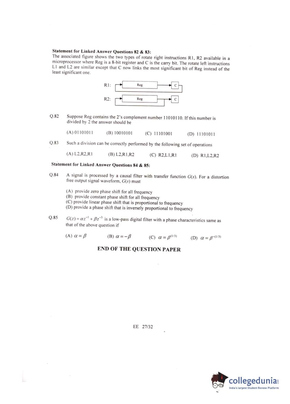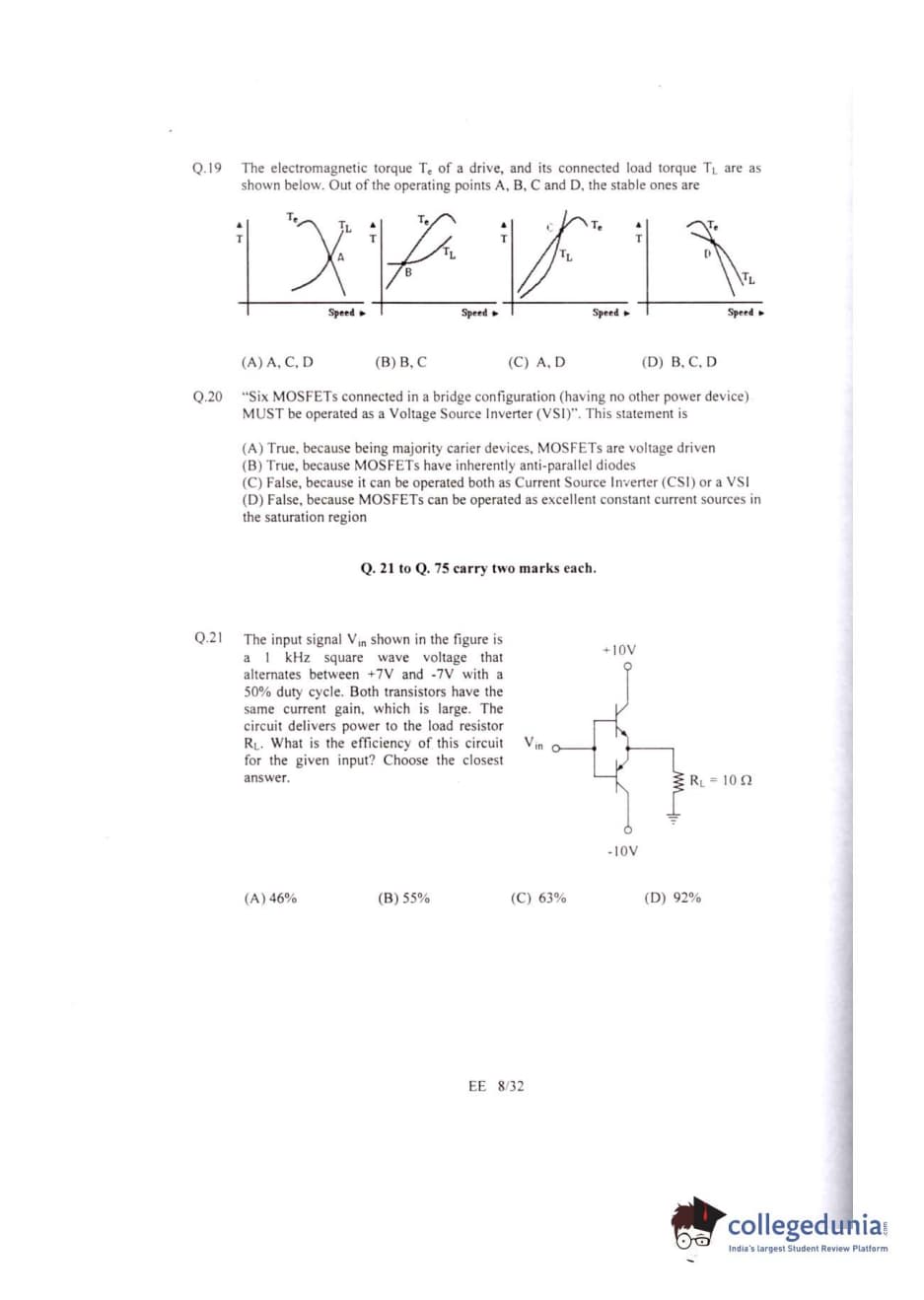 - In GATE EE 2007, only the Core Discipline question was asked. A total of 85 questions related to Electrical Engineering were asked on the question paper. Questions from 1 to 20 carried 1 mark and questions from 21 to 85 were of 2 marks. Detailed information regarding the pattern of GATE EE 2007 is given below: