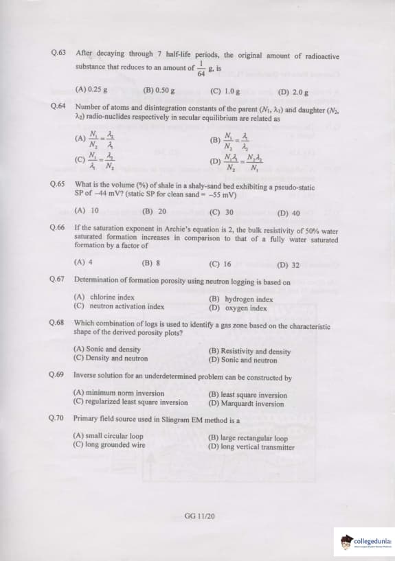 It is important to go through with the previous year's question papers of GATE for aspirants preparing for GATE upcoming exams to score well. Practicing GATE GG Previous year's Question paper will help a candidate to evaluate their performance.
