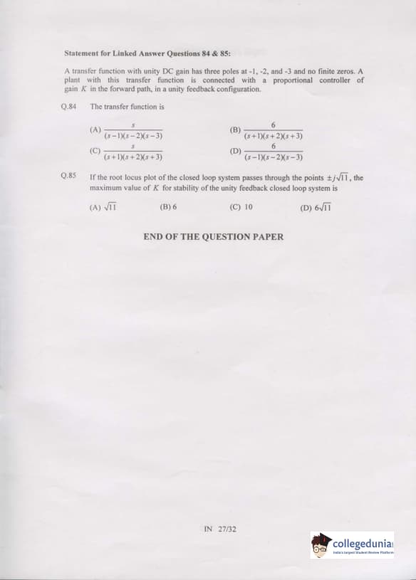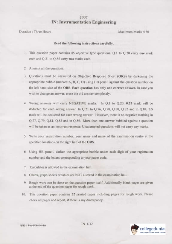 GATE 2007 Instrumentation Engineering (IN) Question Paper with Answer Key PDFs ( February 11 - Forenoon Session)