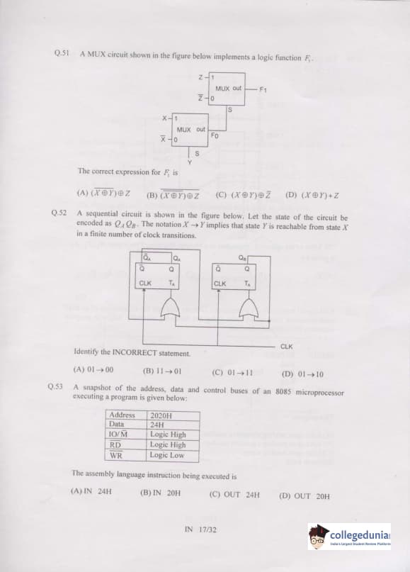 | GATE 2019 Question Papers | GATE 2018 Question Papers | GATE 2017 Question Papers |