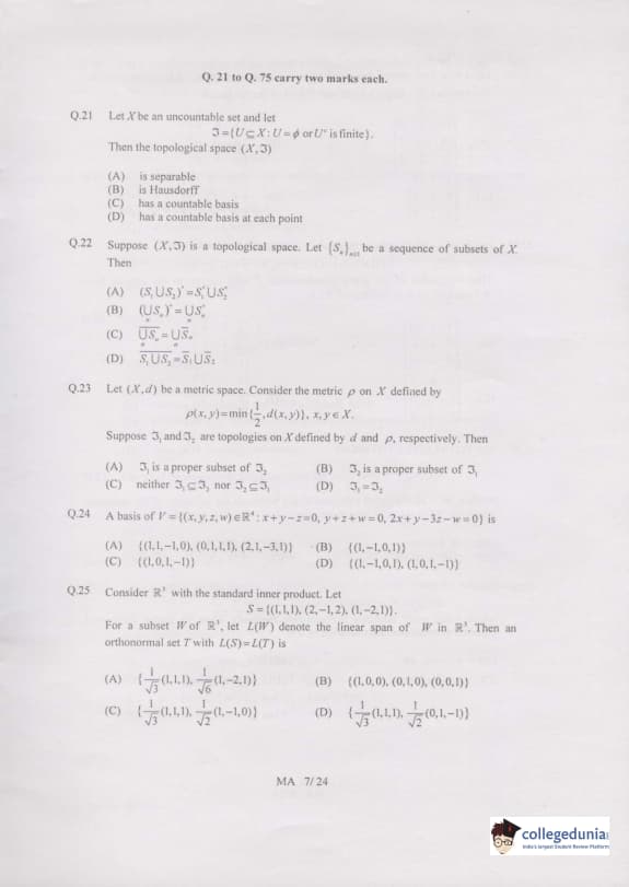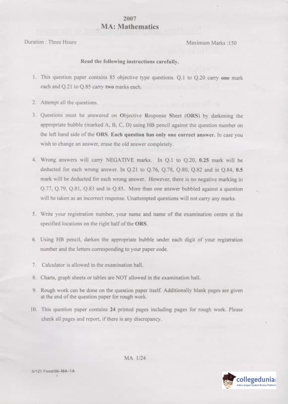 GATE 2007 MA Question Paper |