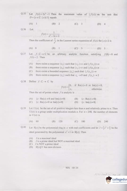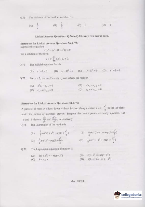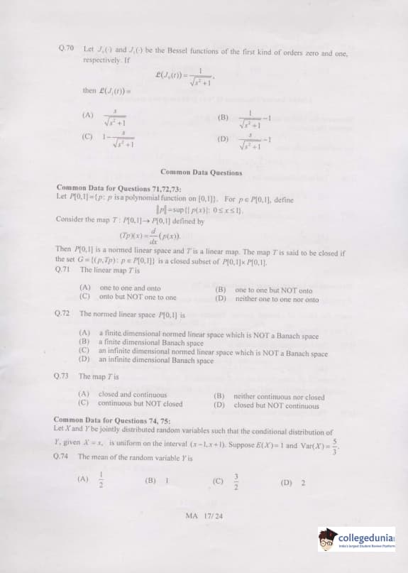 GATE 2007 MA Question paper with answer key PDF is available for download. The exam was successfully organized by IIT Kanpur on February 11, 2007 in the forenoon session. The question paper had 85 questions in all, separated into two portions. 20 questions of 1 mark and 65 questions of 2 mark were present in the question paper. GATE 2007 MA question paper was rated easy to moderate level.