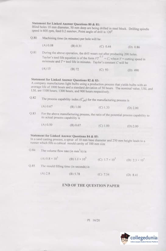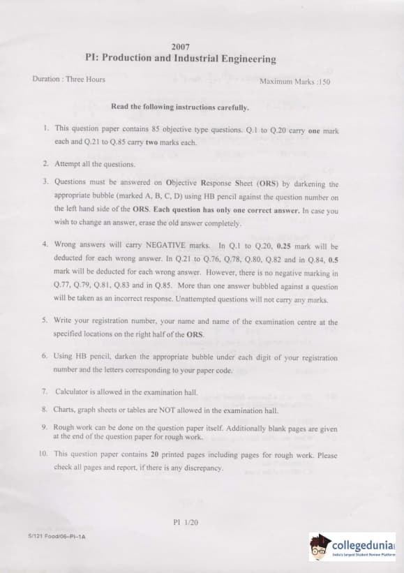 | GATE 2007 Production and Industrial Engineering (PI) Question Paper PDF | GATE 2007 Production and Industrial Engineering (PI) Answer Key PDF |