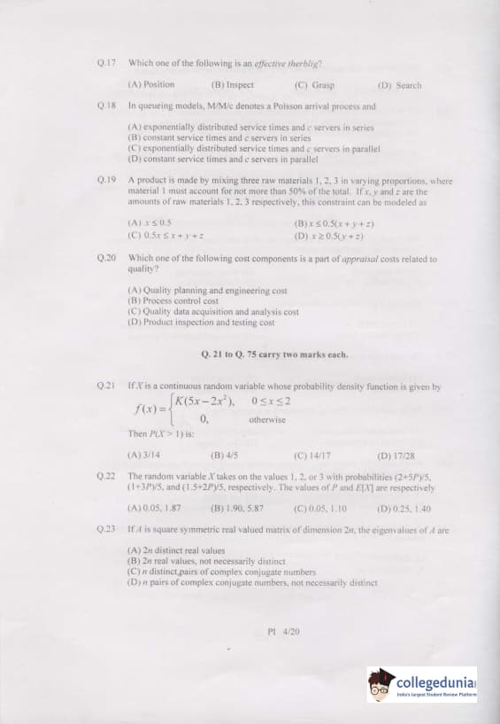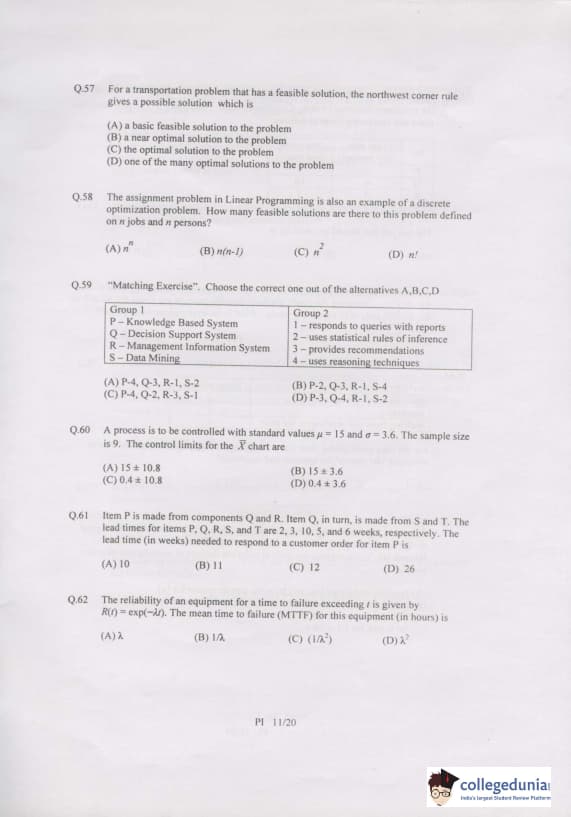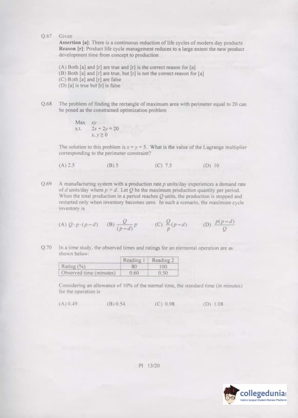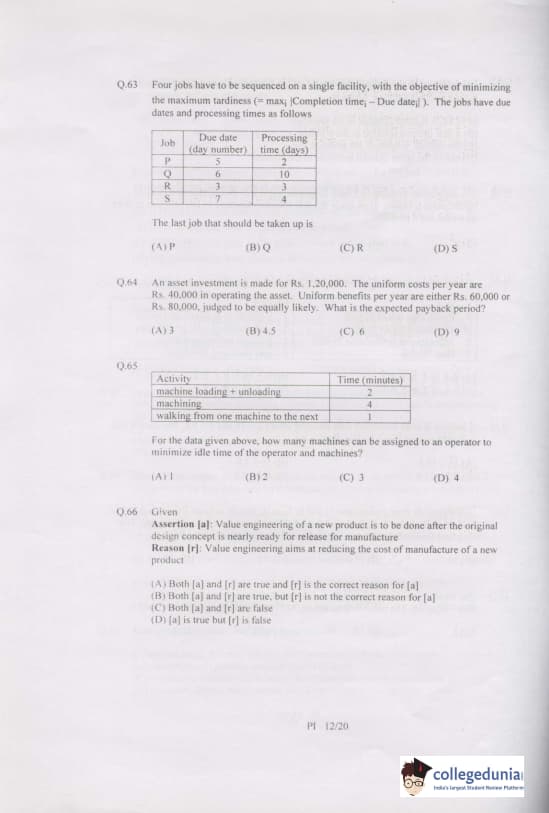 GATE 2007 Production and Industrial Engineering (PI) Question Paper with Answer Key pdf is available for download. The exam was conducted by IIT Kanpur on February 11 . The question paper comprised a total of 85 questions from General Aptitude and Production and Industrial Engineering (PI) topics.