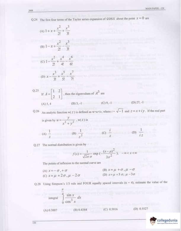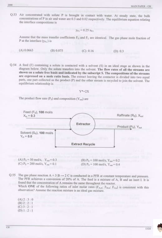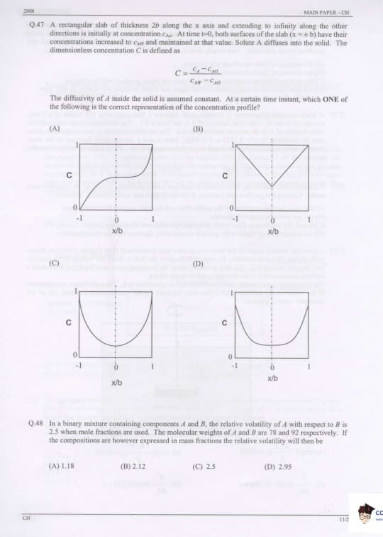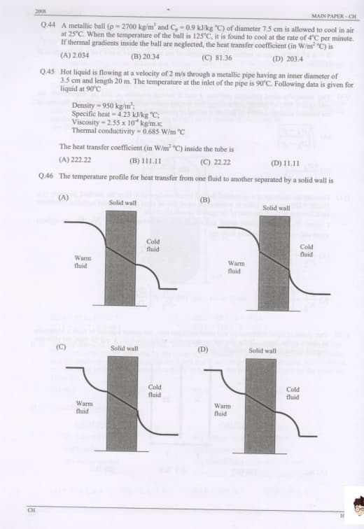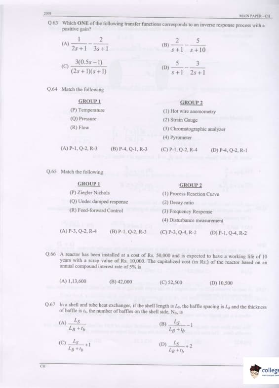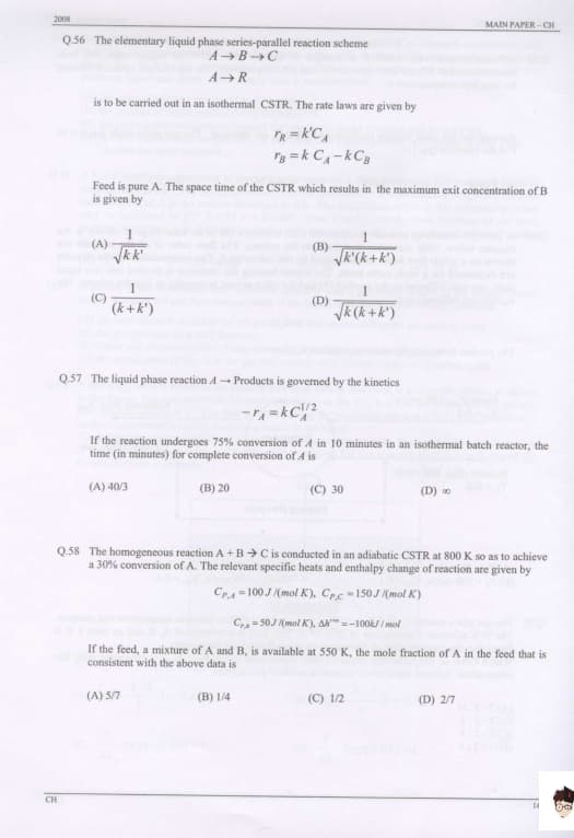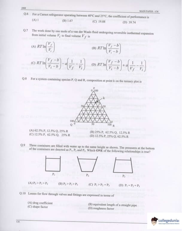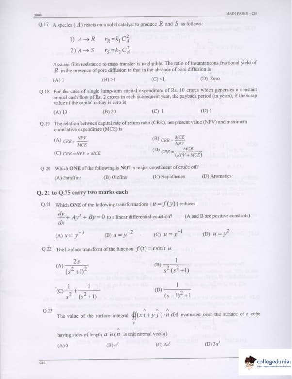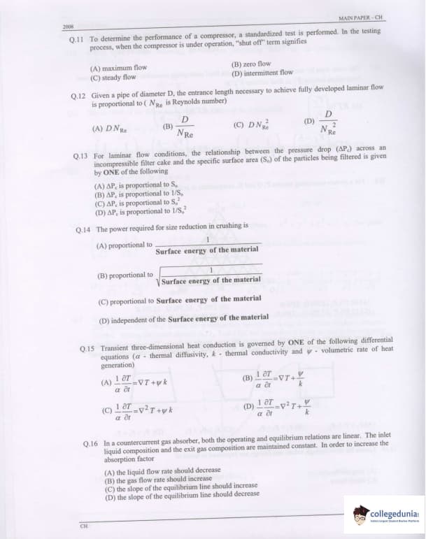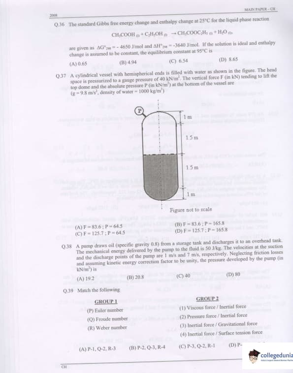 GATE 2008 Chemical Engineering (CH) Question Paper With Answer Key PDFs