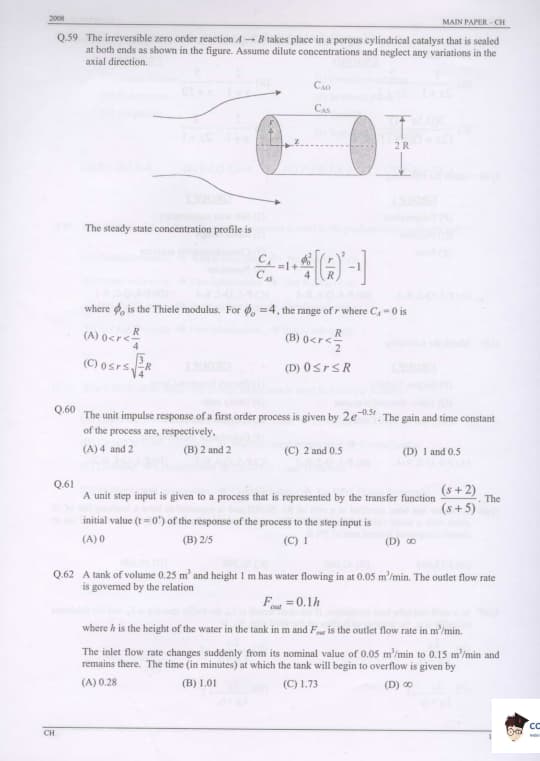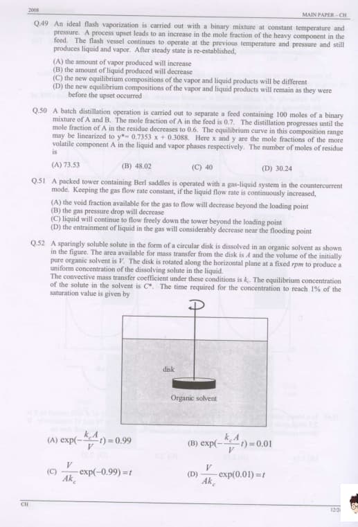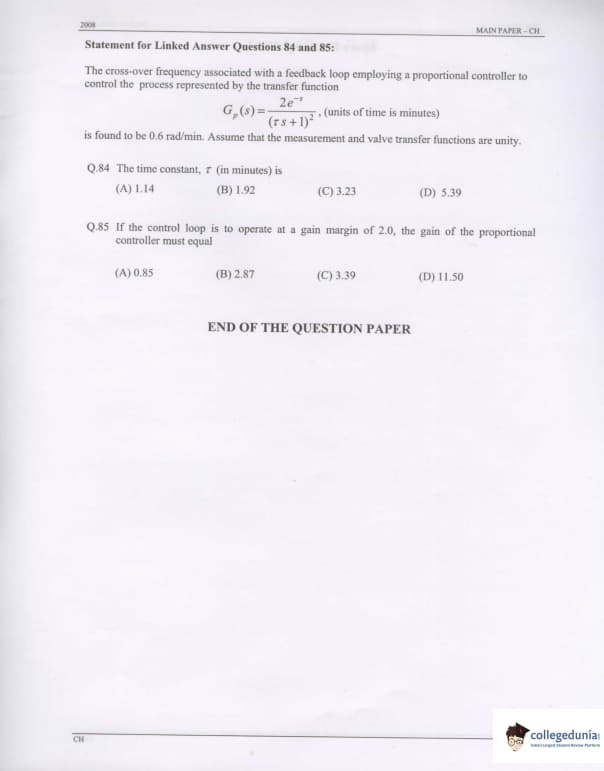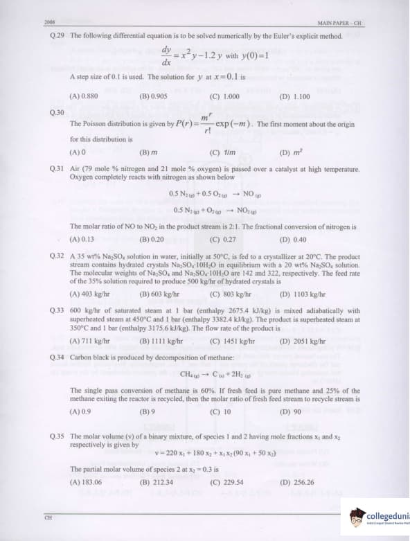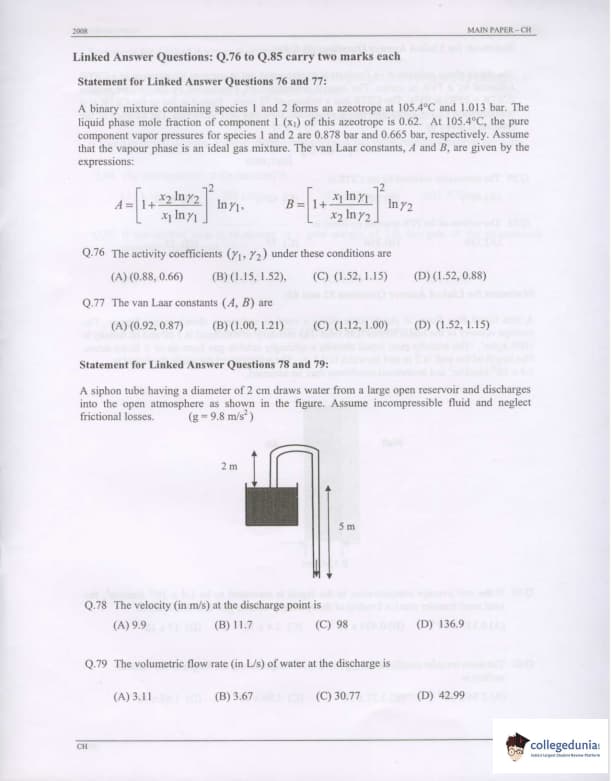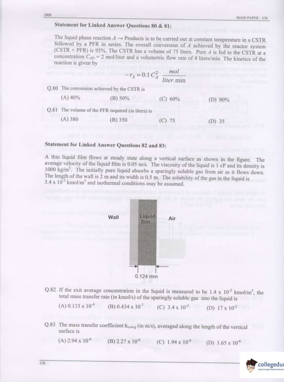 GATE 2008 Chemical Engineering (CH) Question Paper: Detailed Analysis