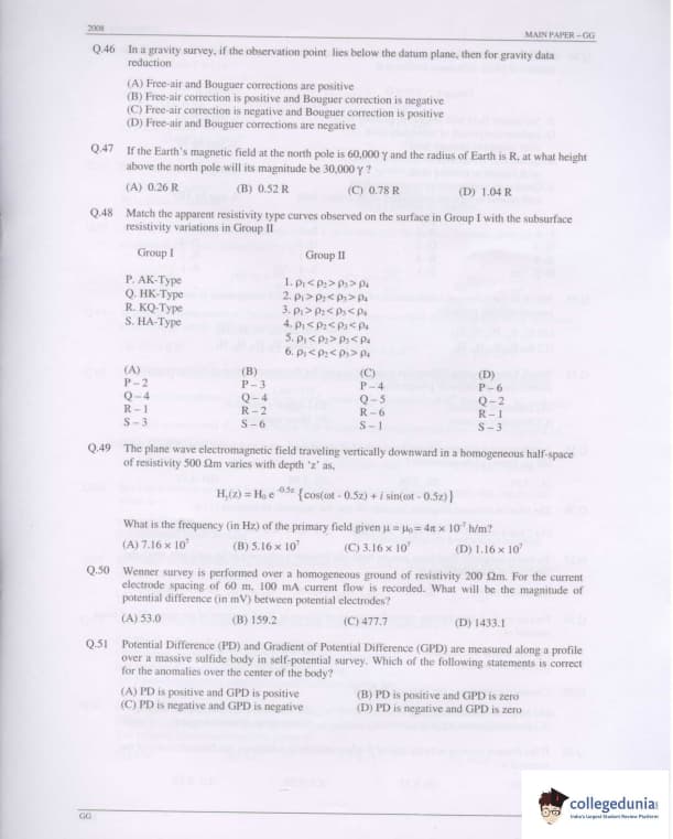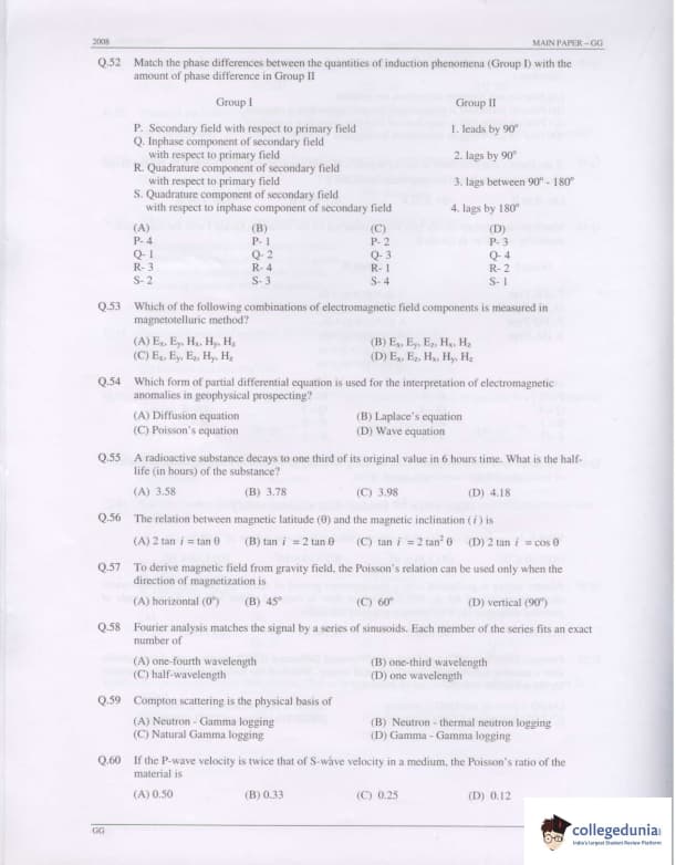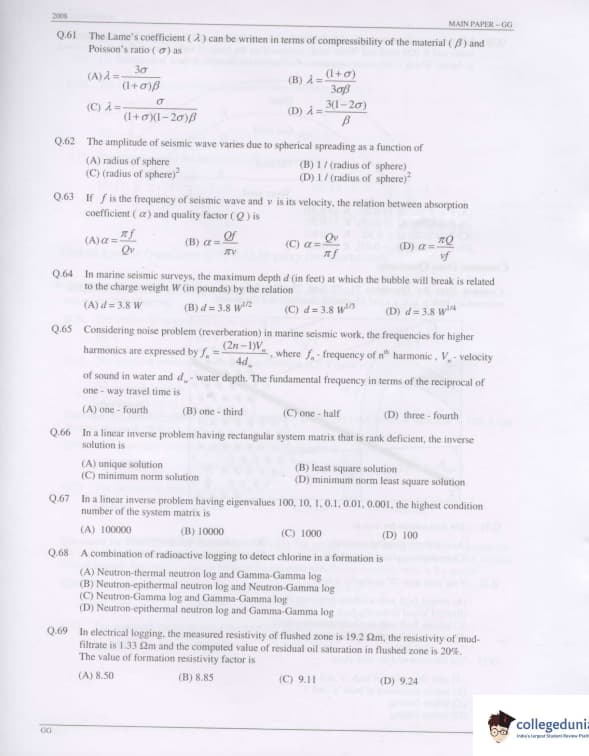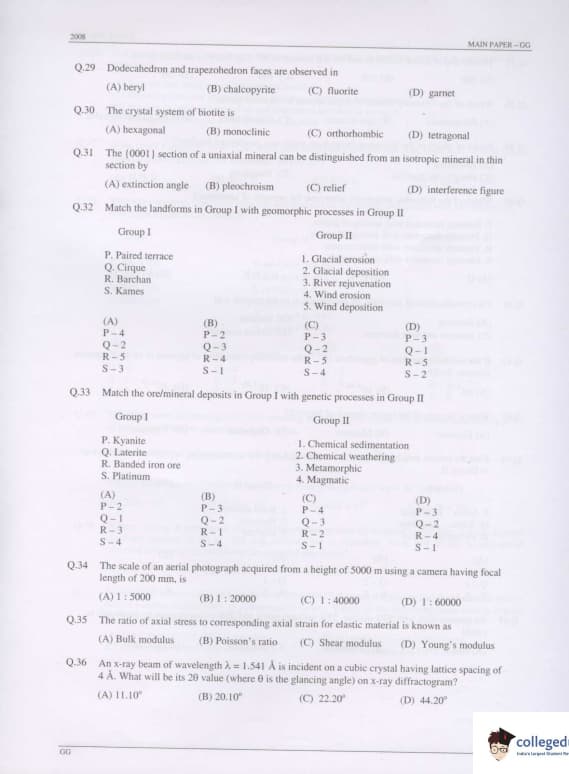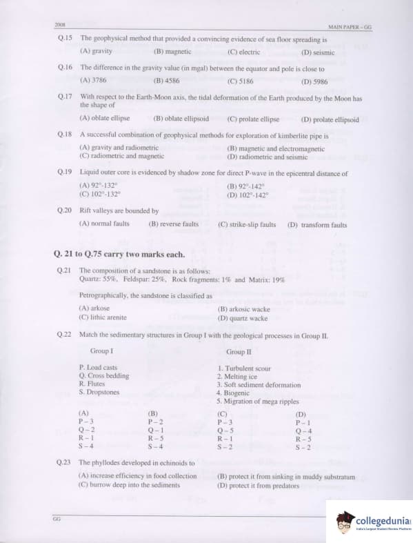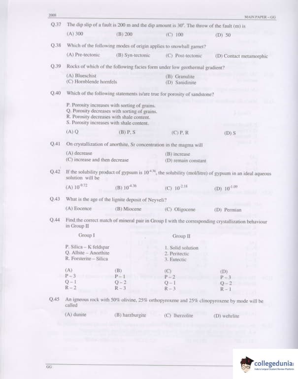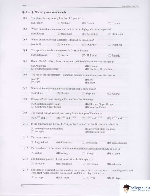 | GATE 2008 GG Question Paper | GATE 2008 GG Answer Key |