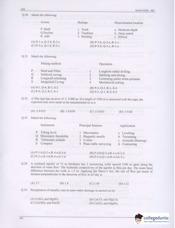 | GATE 2008 Mining Engineering (MN) Question Paper PDF | GATE 2008 Mining Engineering (MN) Answer Key PDF |