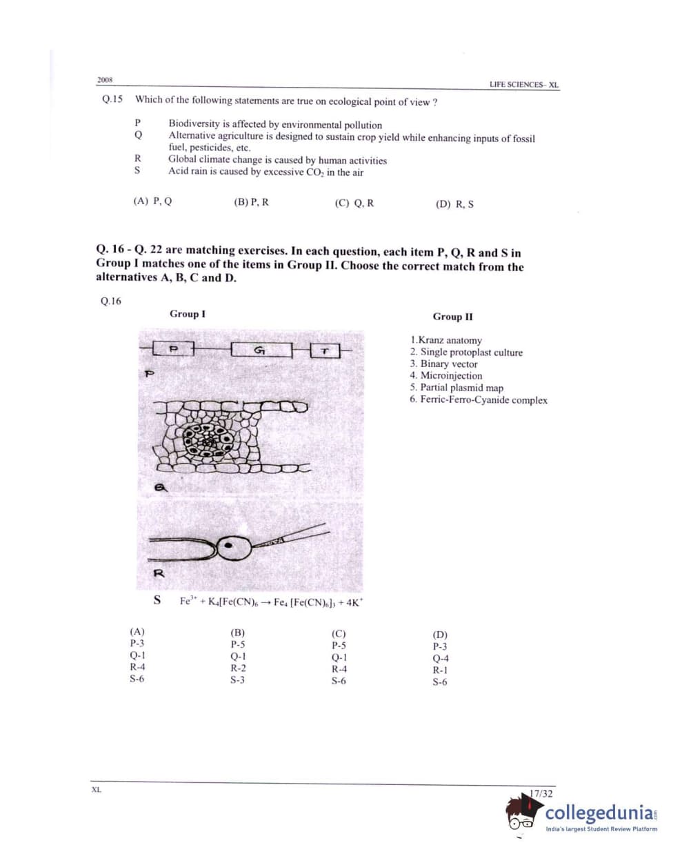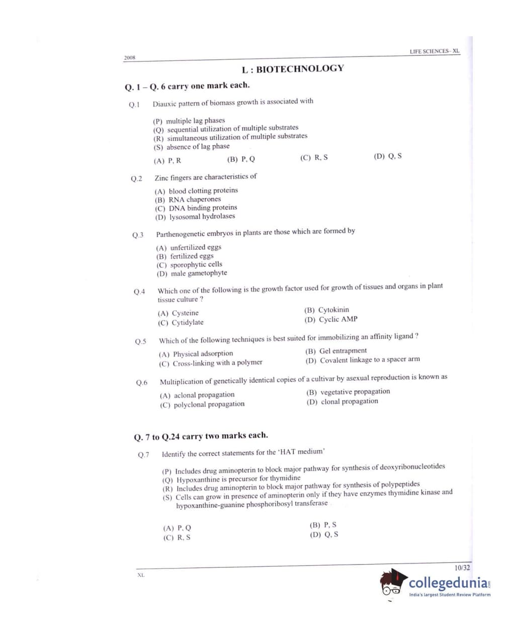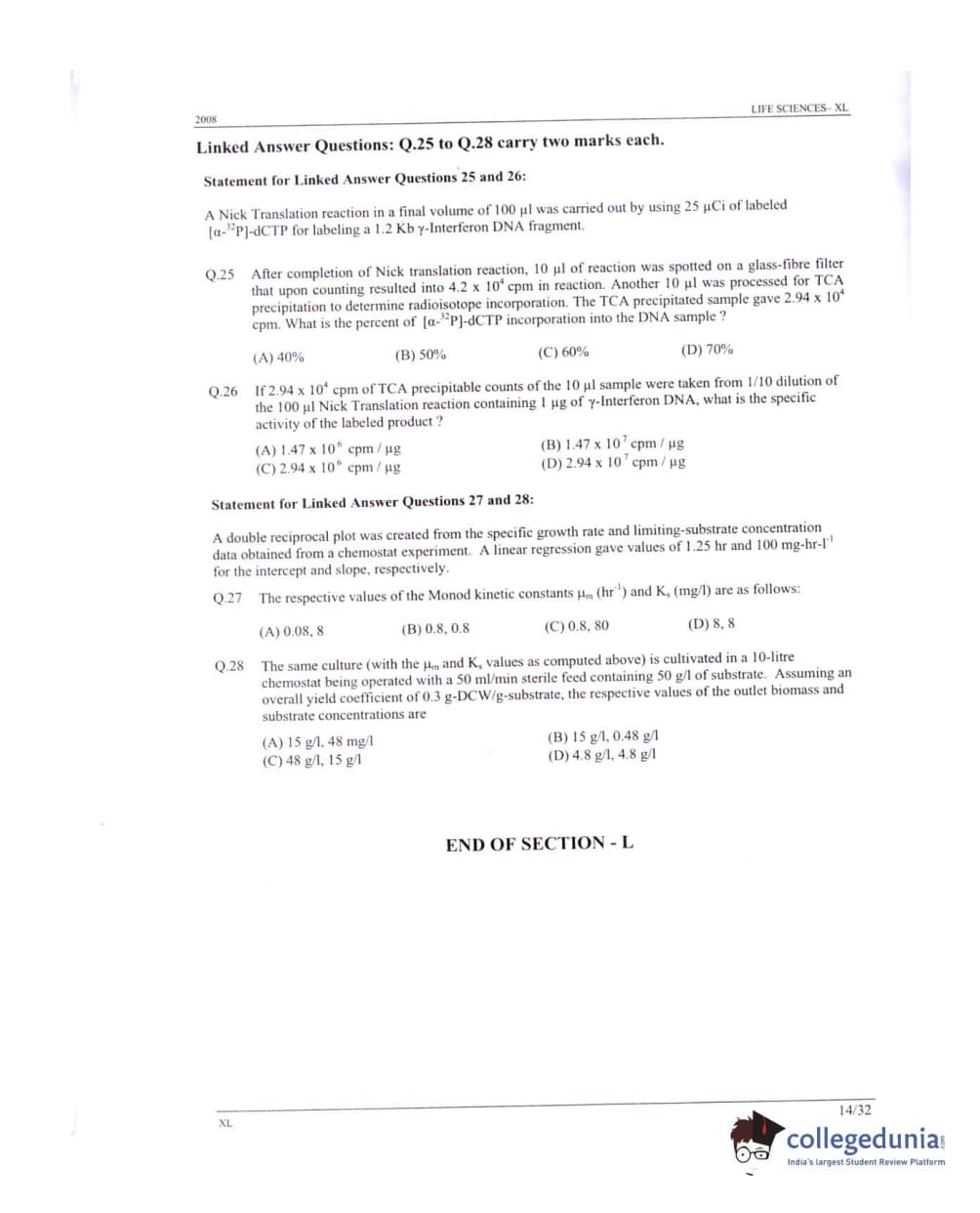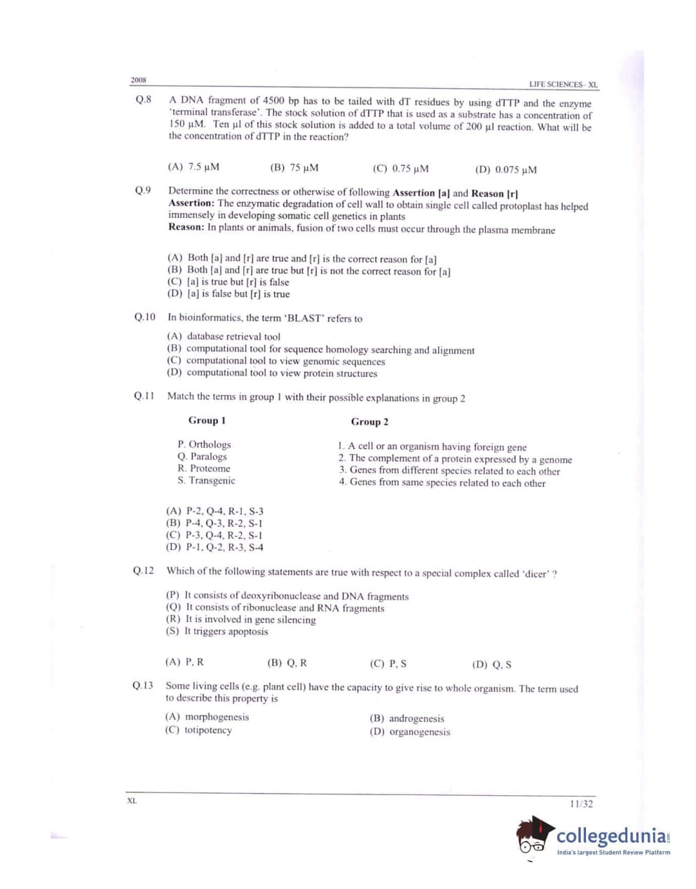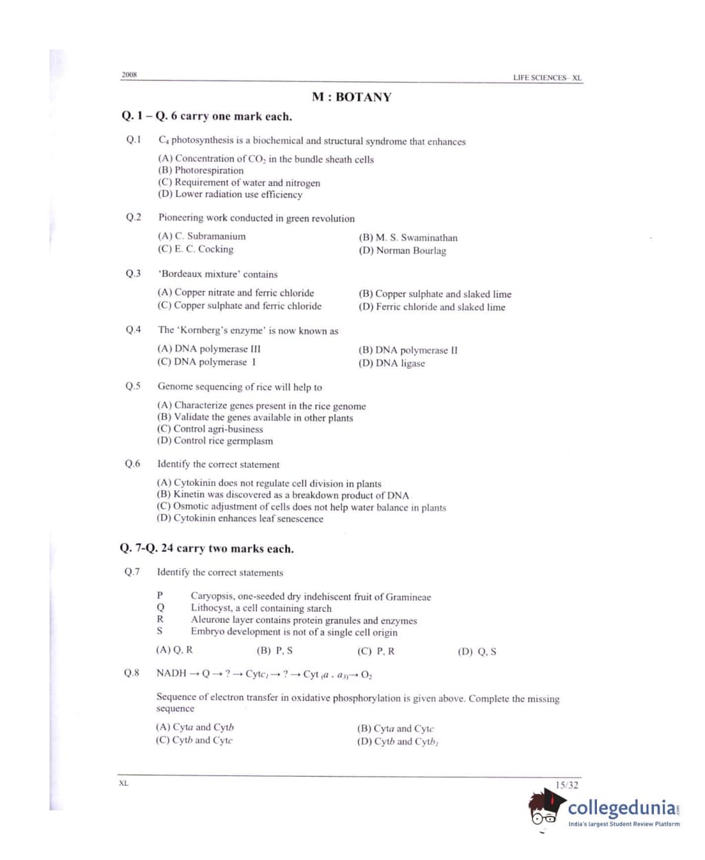 GATE 2008 Life Sciences (XL) Question Paper with Answer Key PDFs