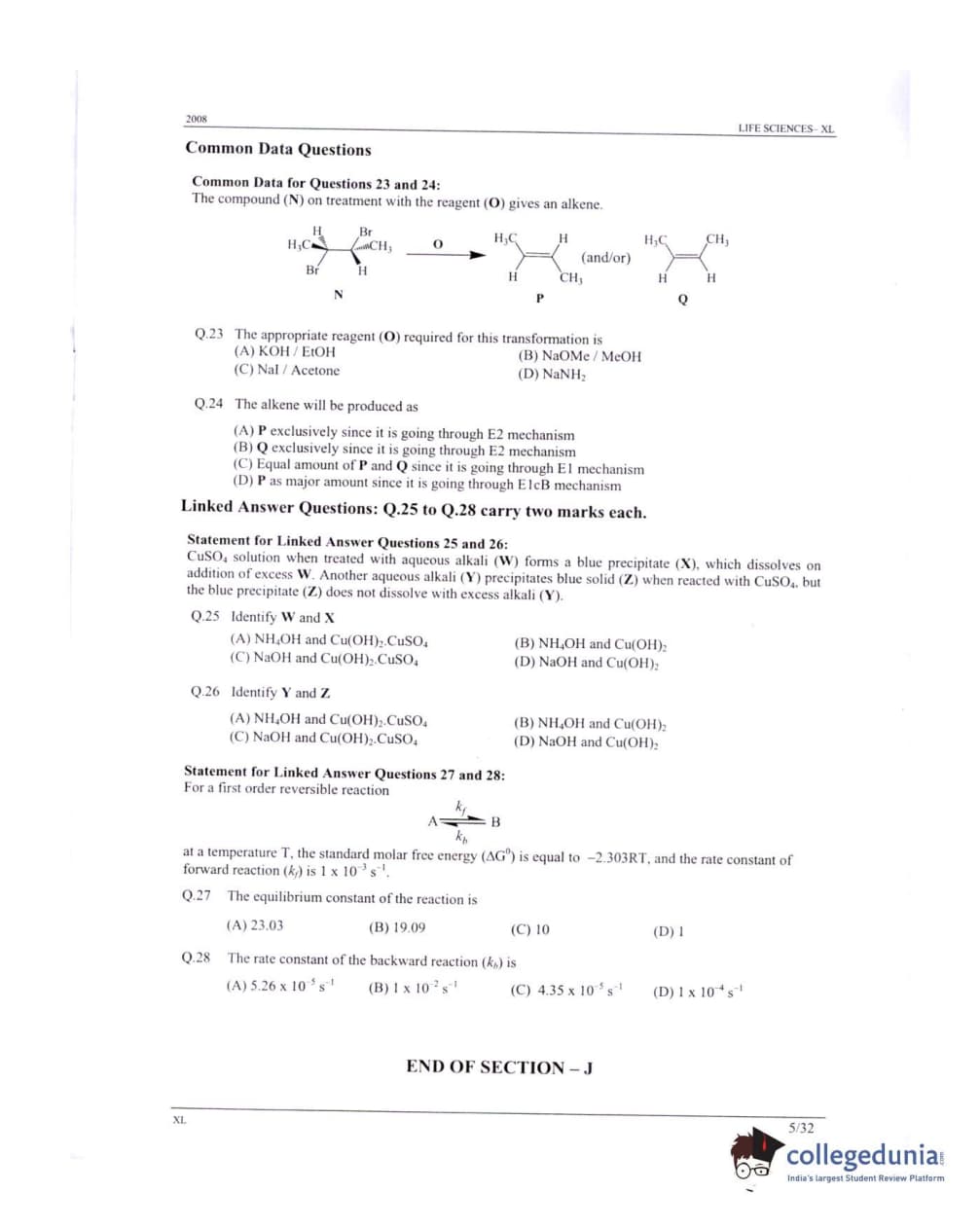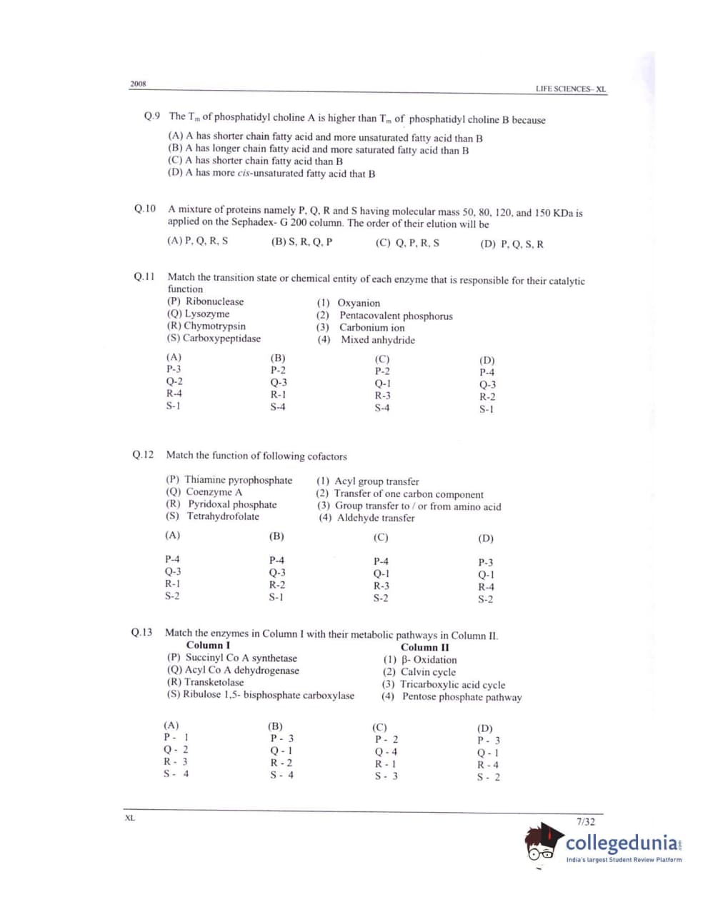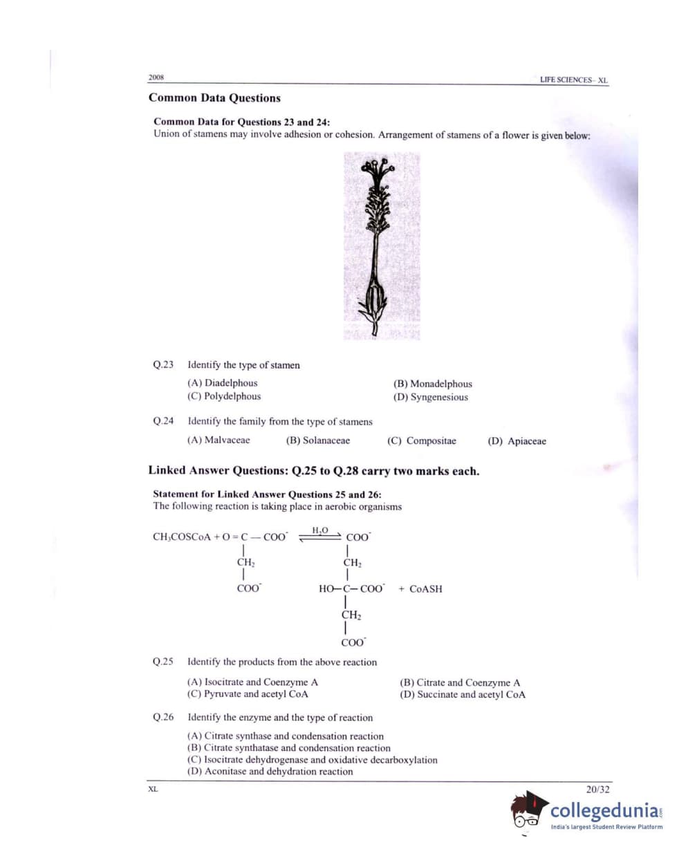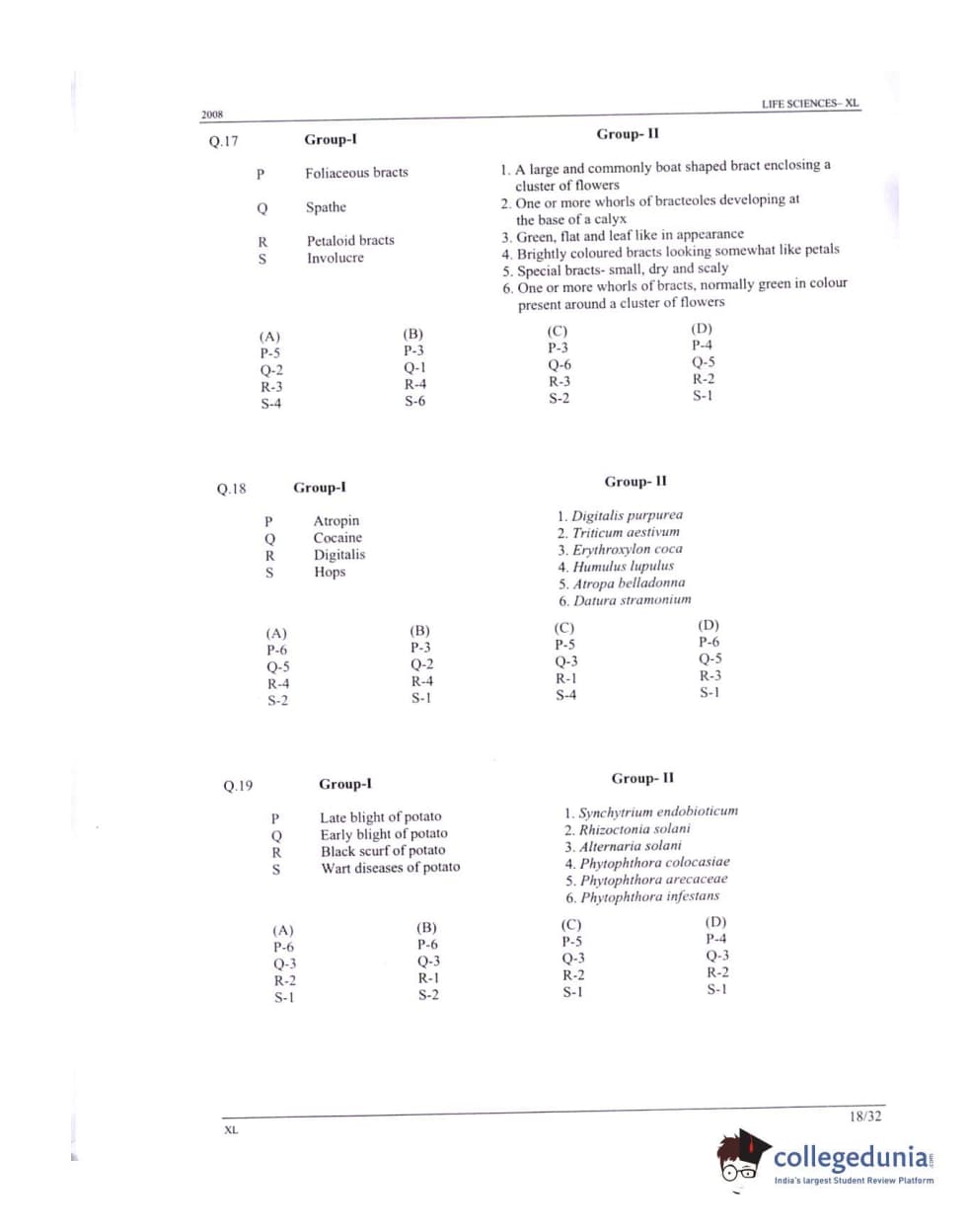 GATE 2008 Life Sciences (XL) Question Paper with Answer Key PDFs