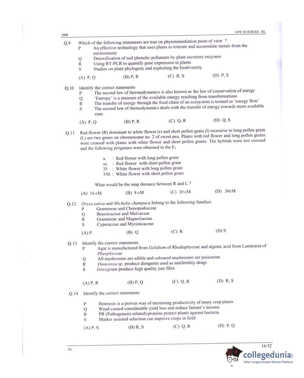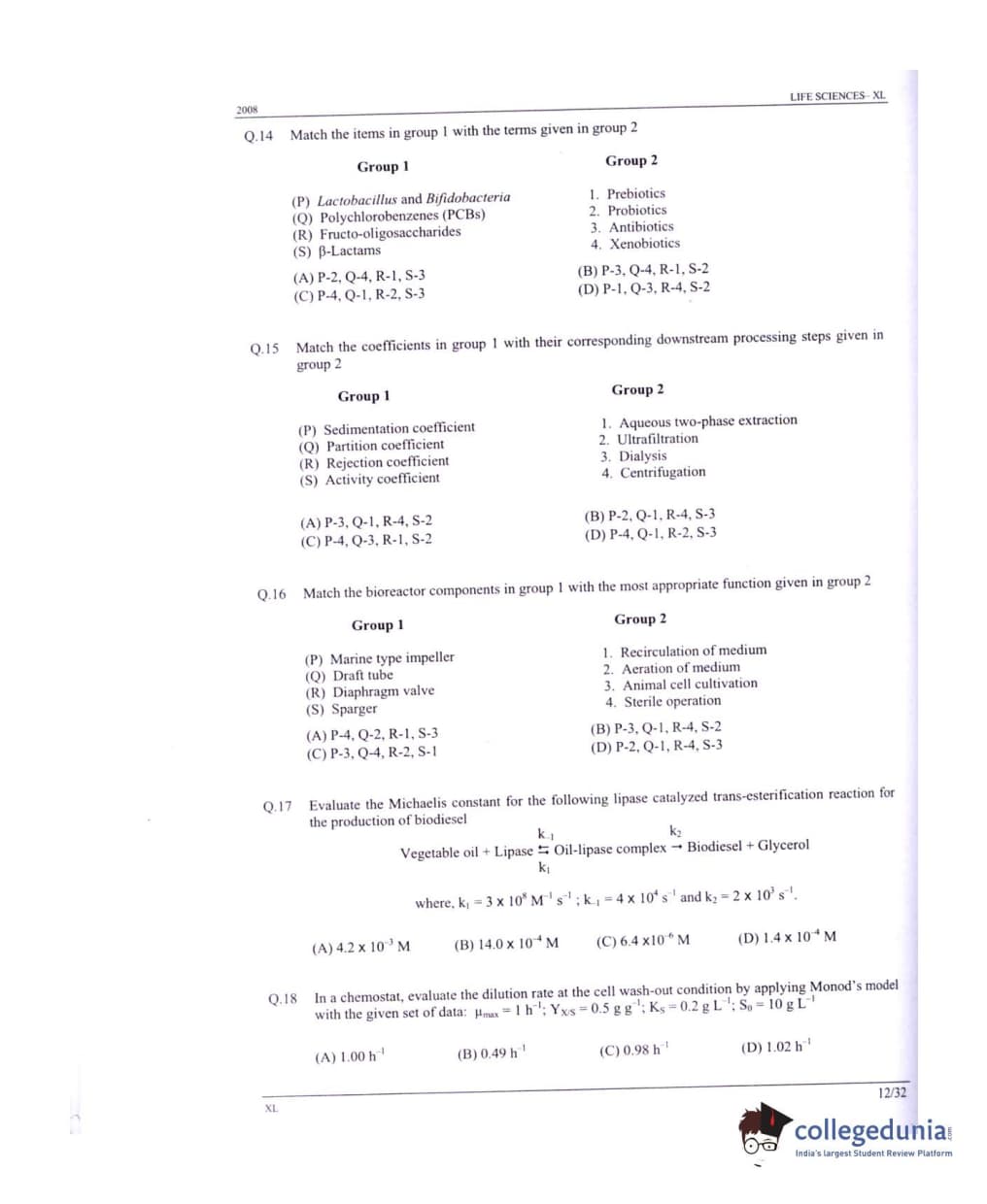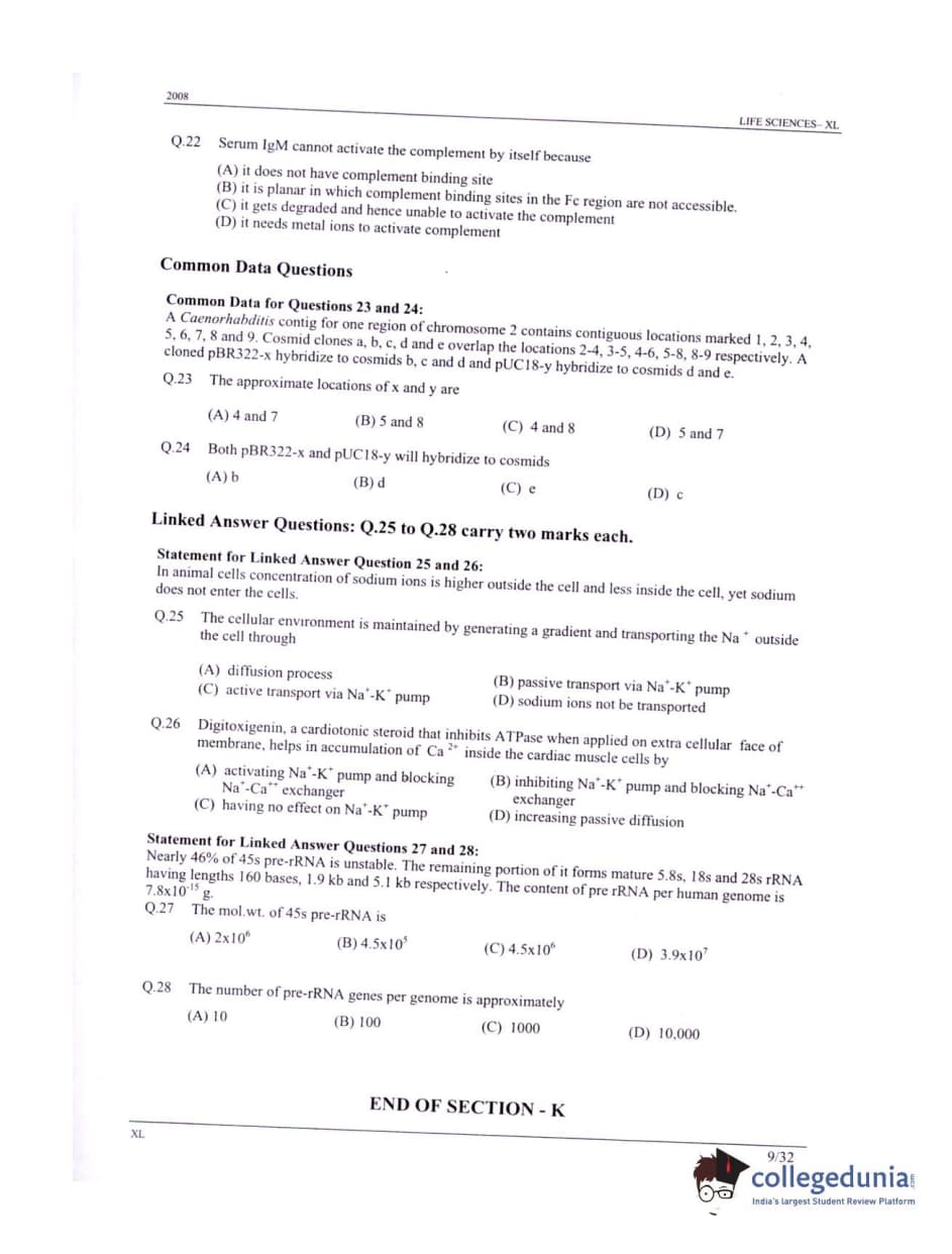 GATE 2008 Life Sciences (XL) Question paper with answer key pdf conducted on February 10 is available for download. The exam was successfully organized by IISc Bangalore. The question paper comprised a total of 84 questions.