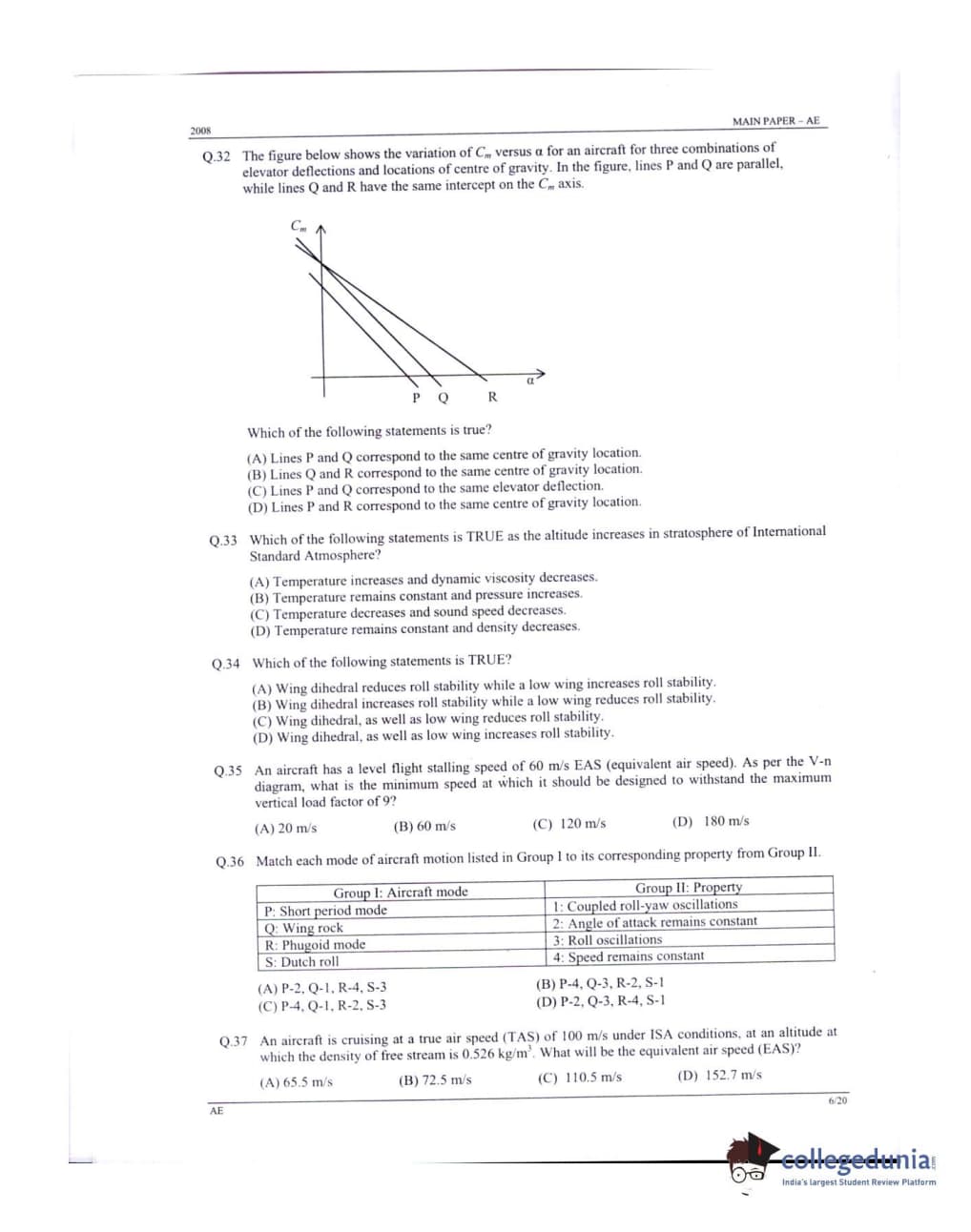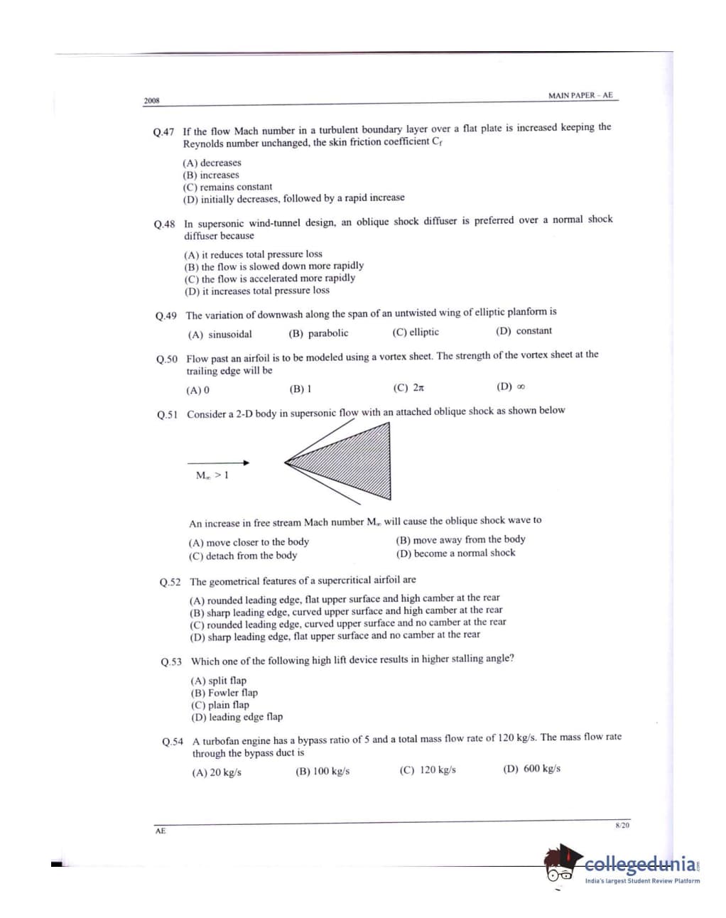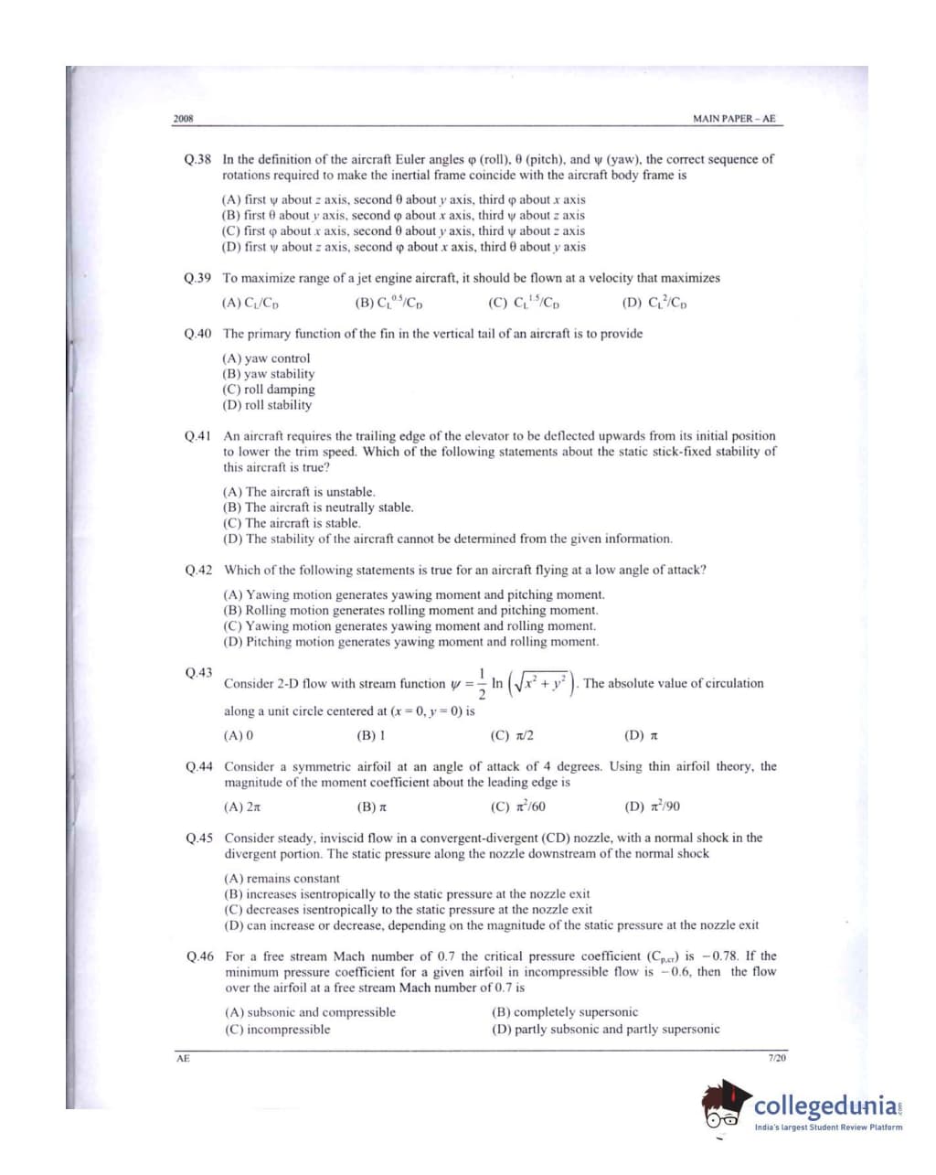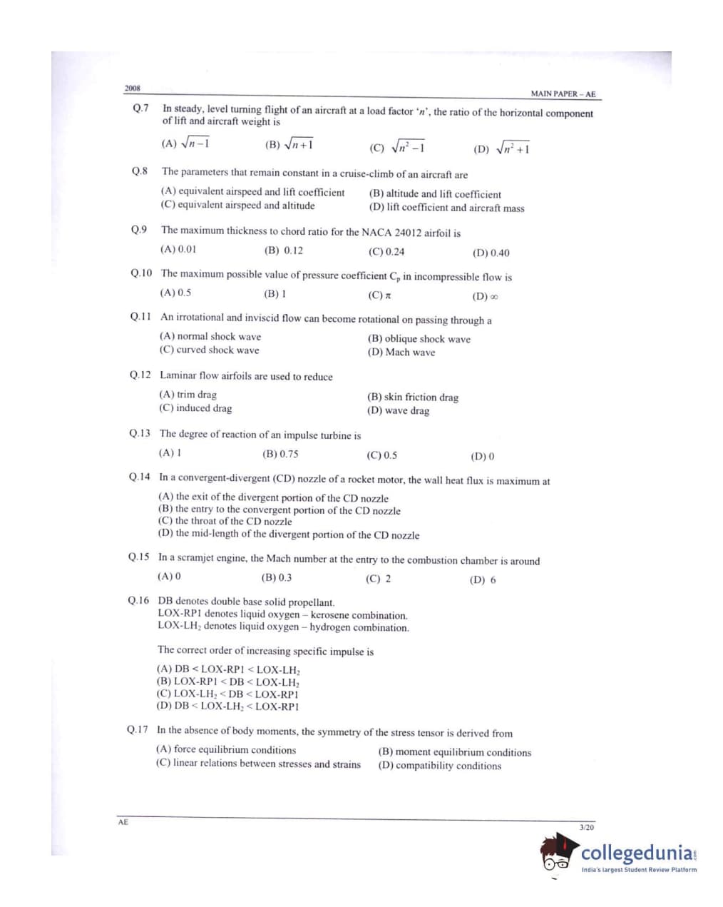 GATE 2008 Aerospace Engineering (AE) Question Paper: Detailed Analysis