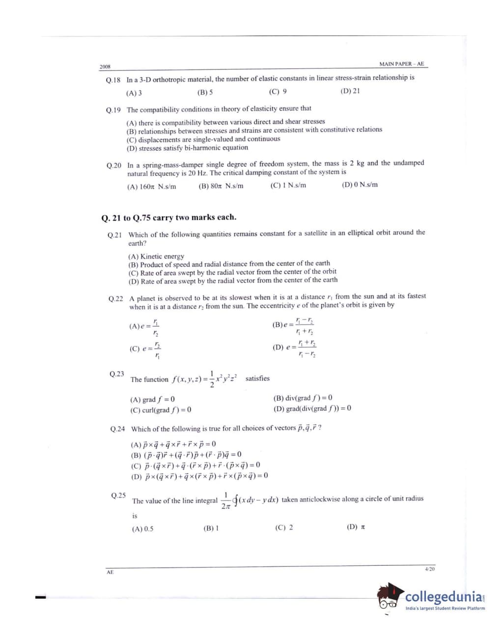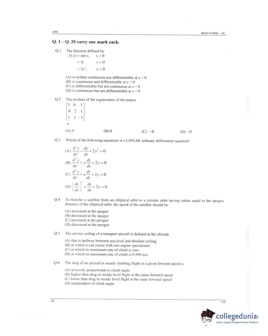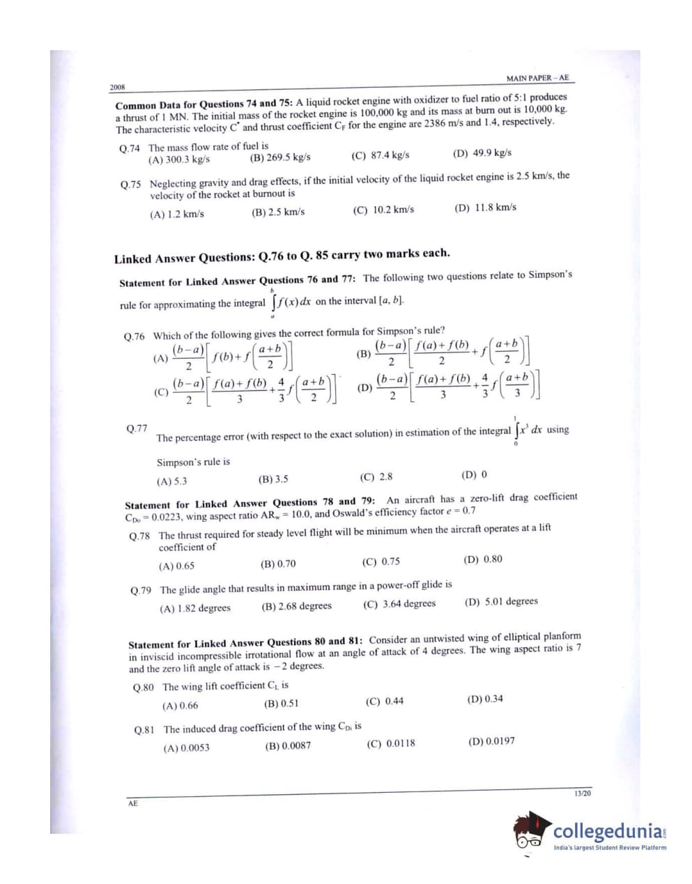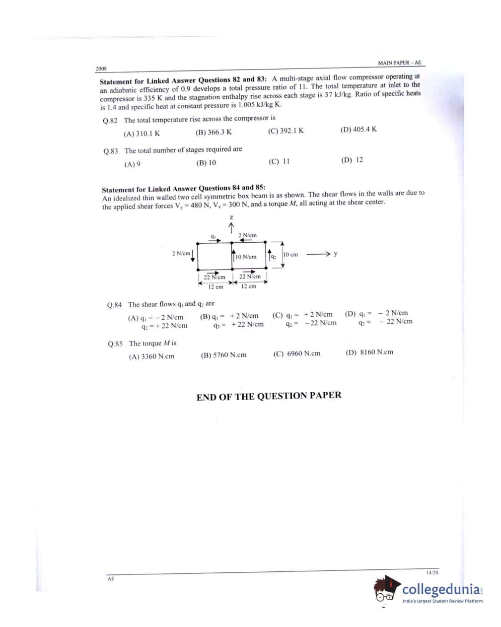 GATE 2008 Aerospace Engineering (AE) Question Paper: Detailed Analysis
